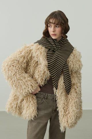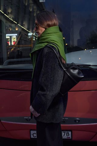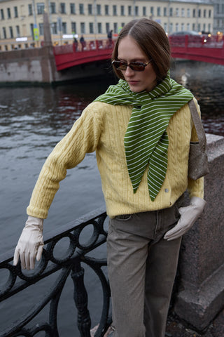 Çift Yönlü Çizgili Fular Atkı Yağ Yeşili