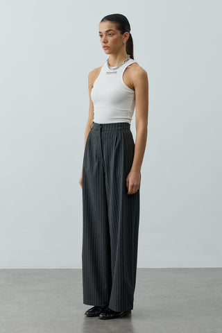Çizgili Palazzo Pantolon Antrasit