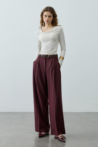 Geniş Pileli Palazzo Pantolon Bordo