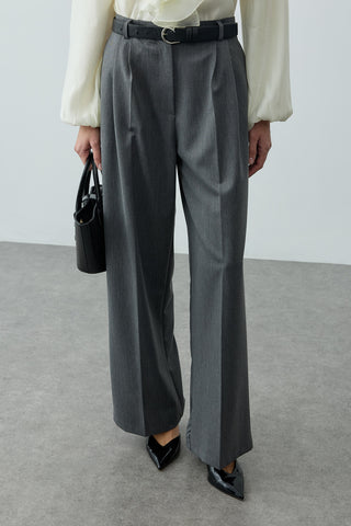 Geniş Pileli Palazzo Pantolon Gri