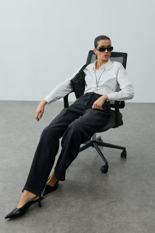 Yüksek Belli Straight Denim Pantolon Siyah