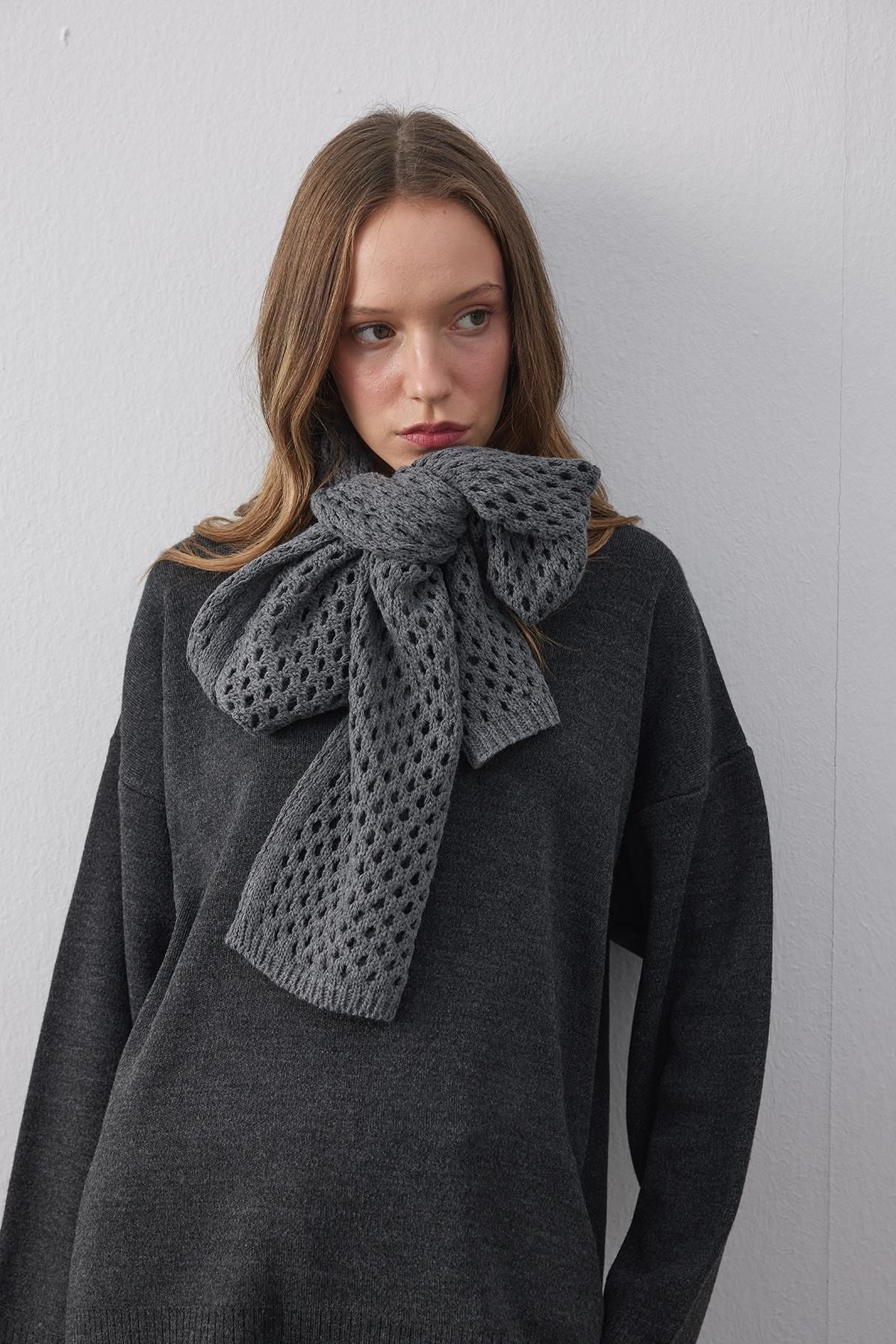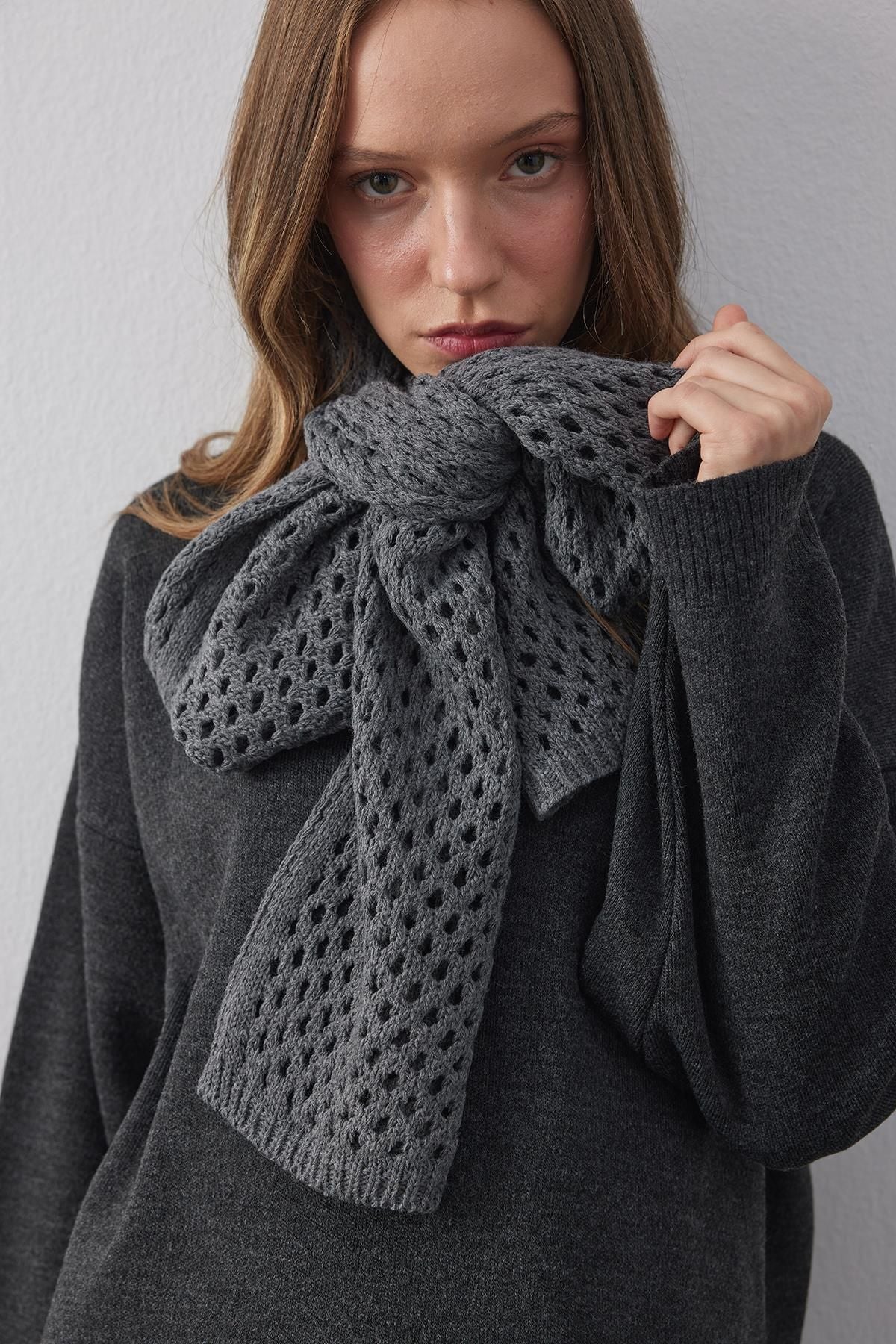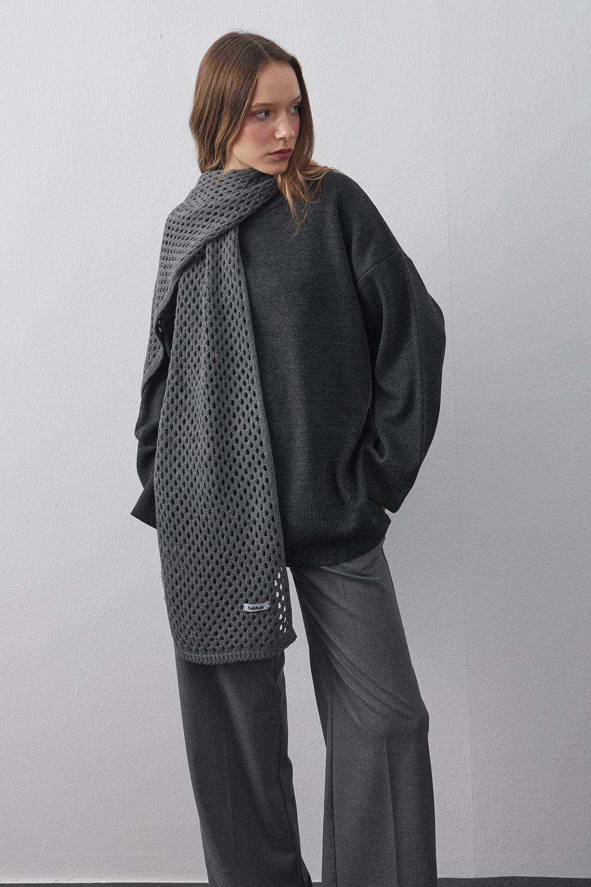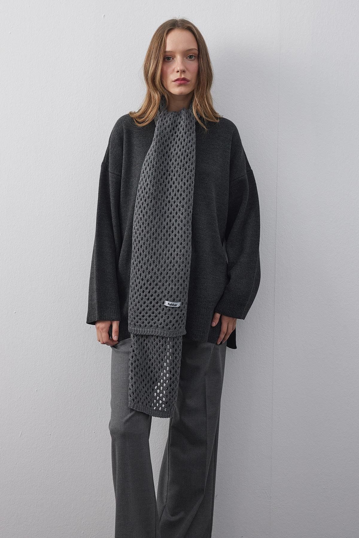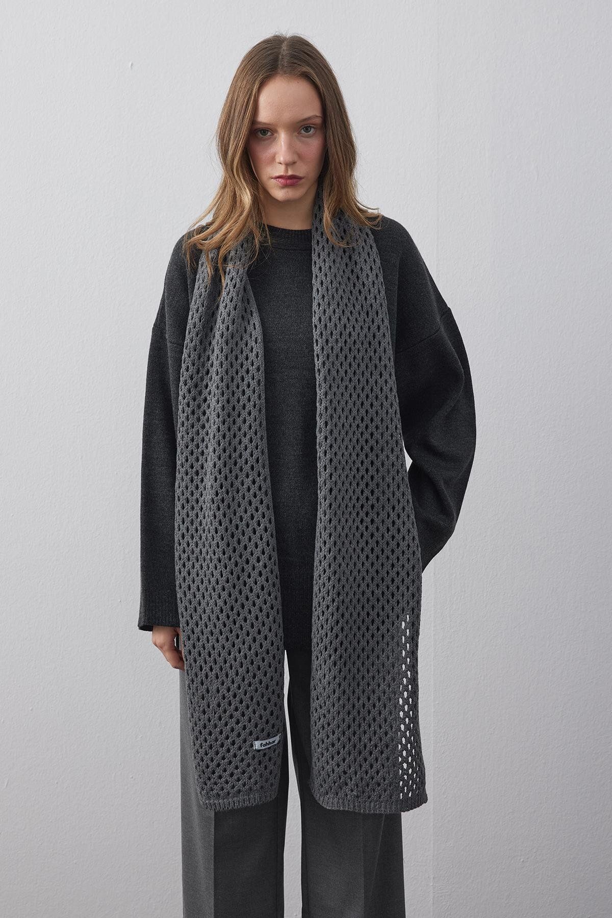 Ajurlu Fular Atkı Antrasit