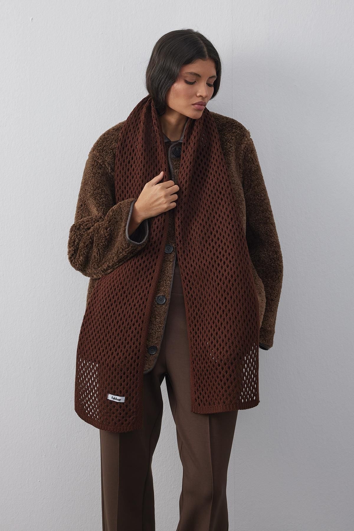 Ajur örgülü, ince atkı.; Atkı boyu:197 Atkı eni:25