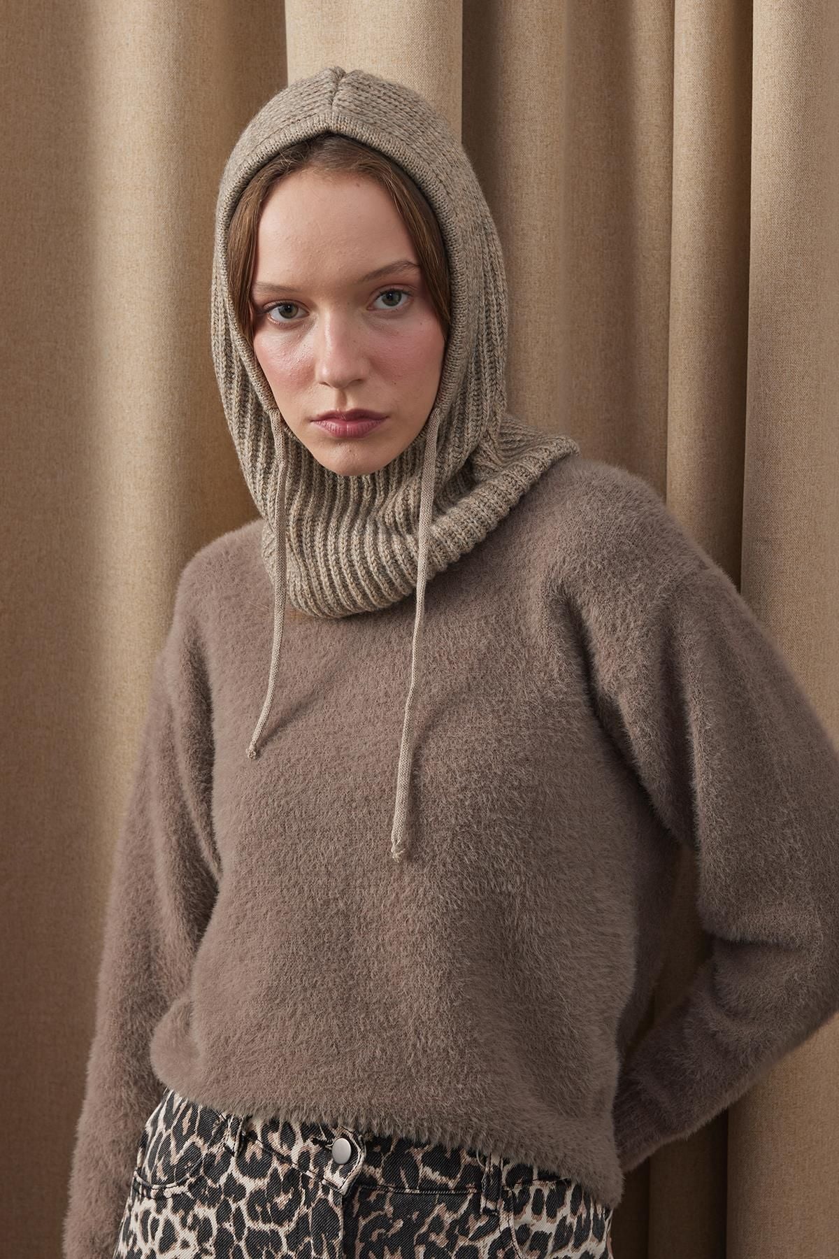 İpli Balaclava Bere Başlık Vizon