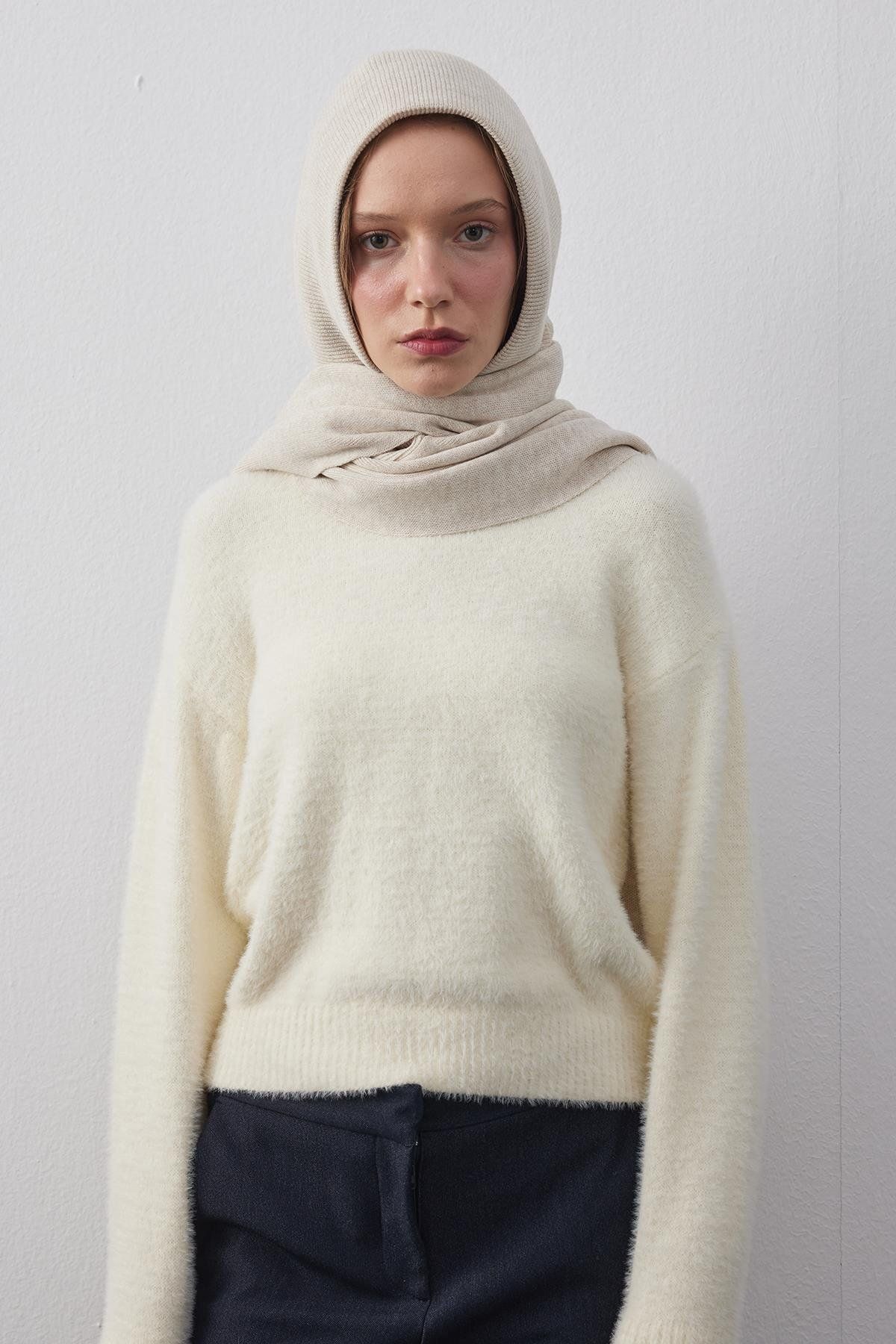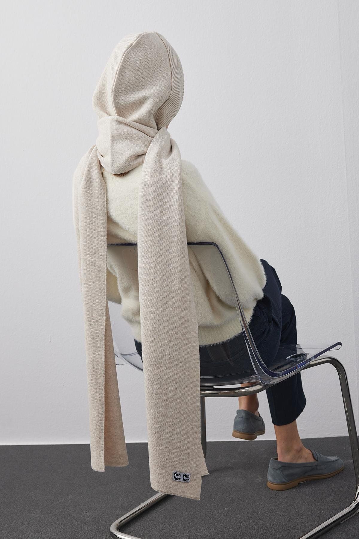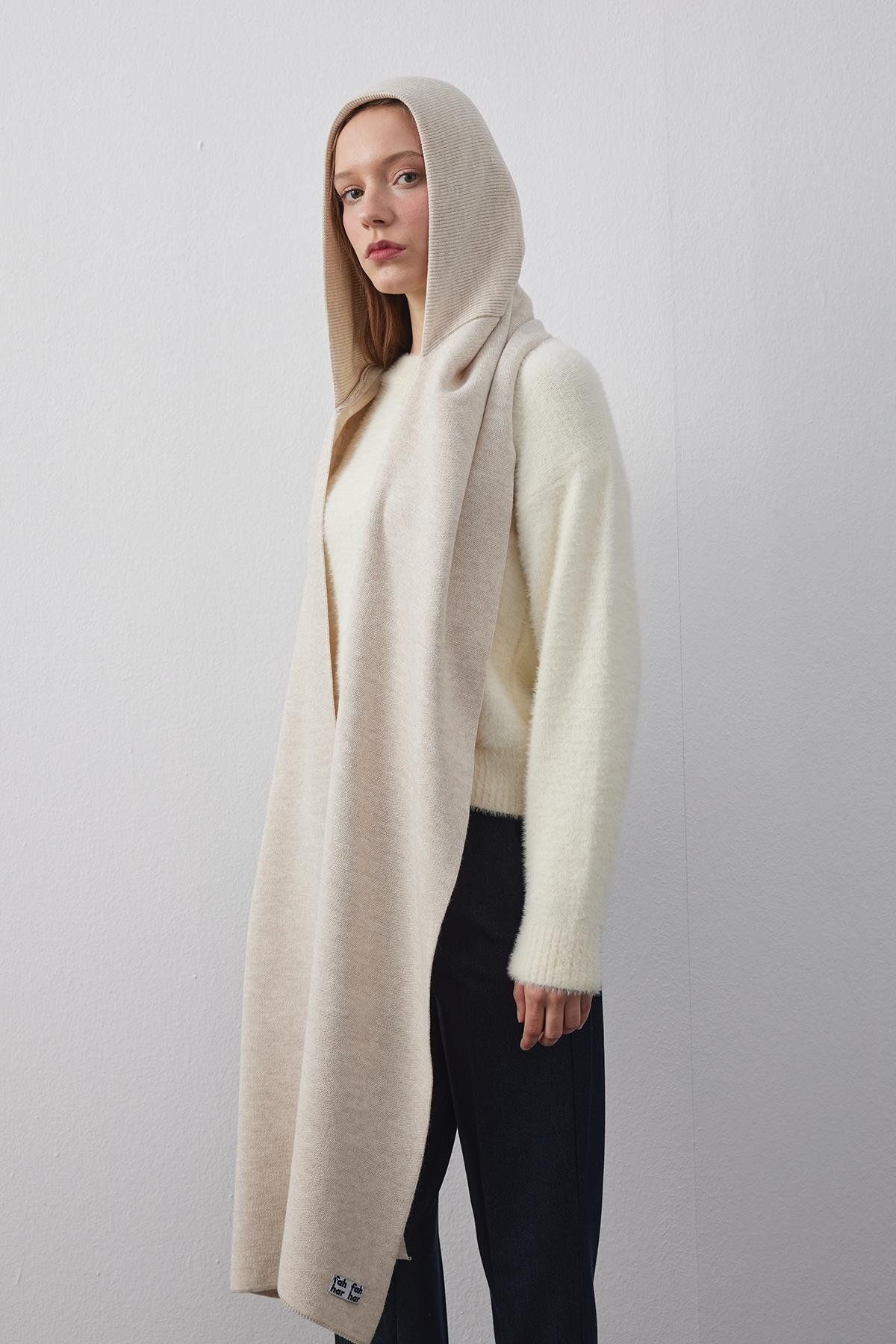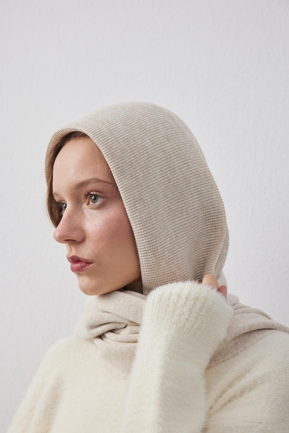 Çift kat ince lastik örgülü şapka ile birleşik kapüşonlu atkı.