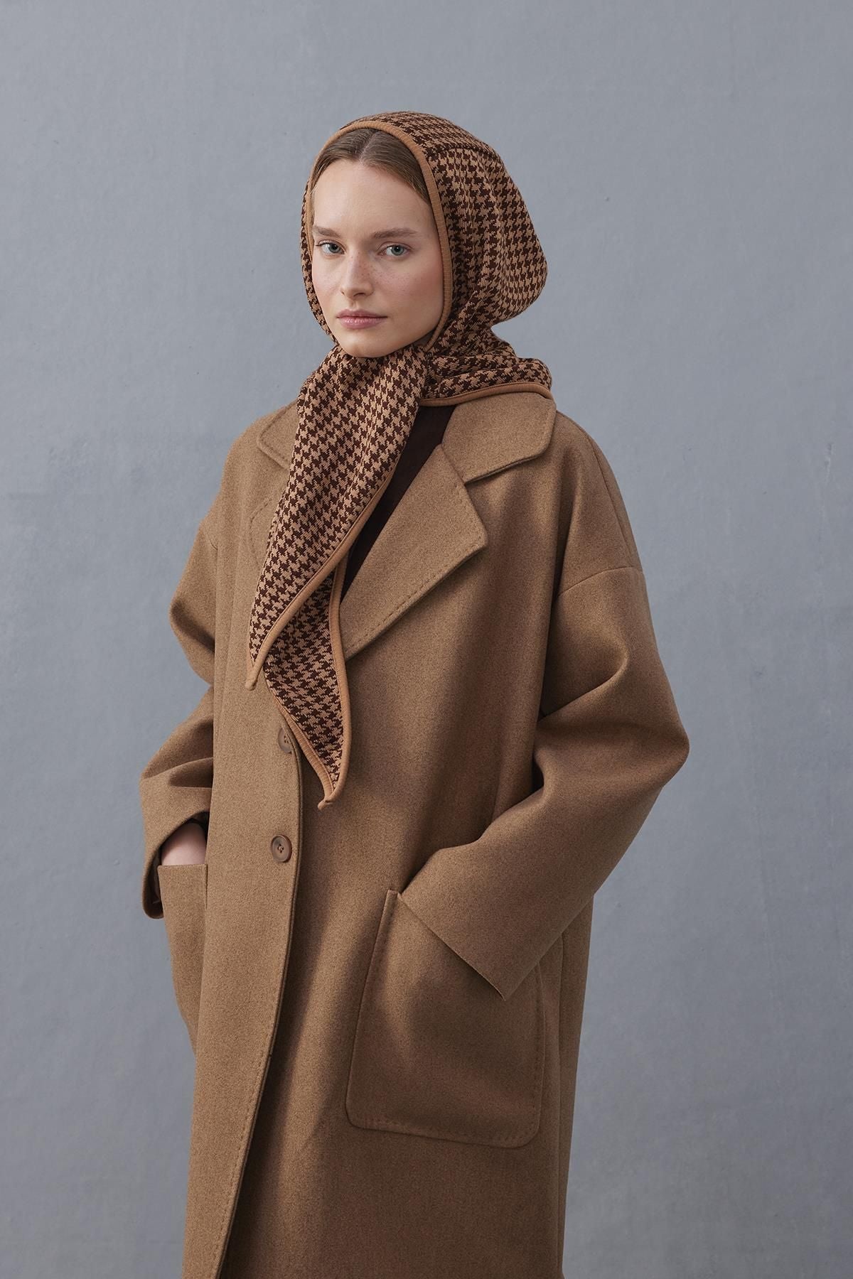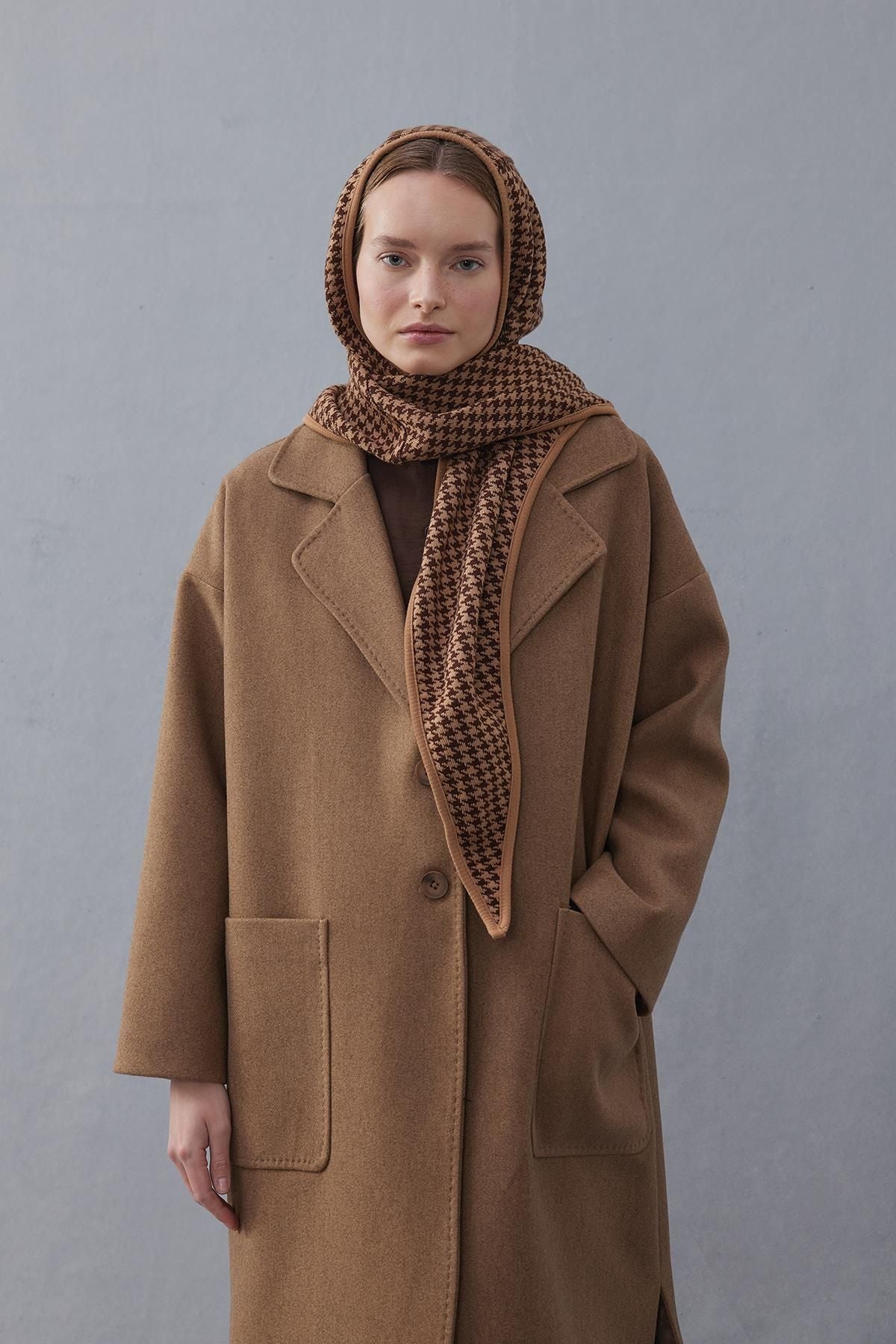Kazayağı Kapüşonlu Atkı Kahverengi