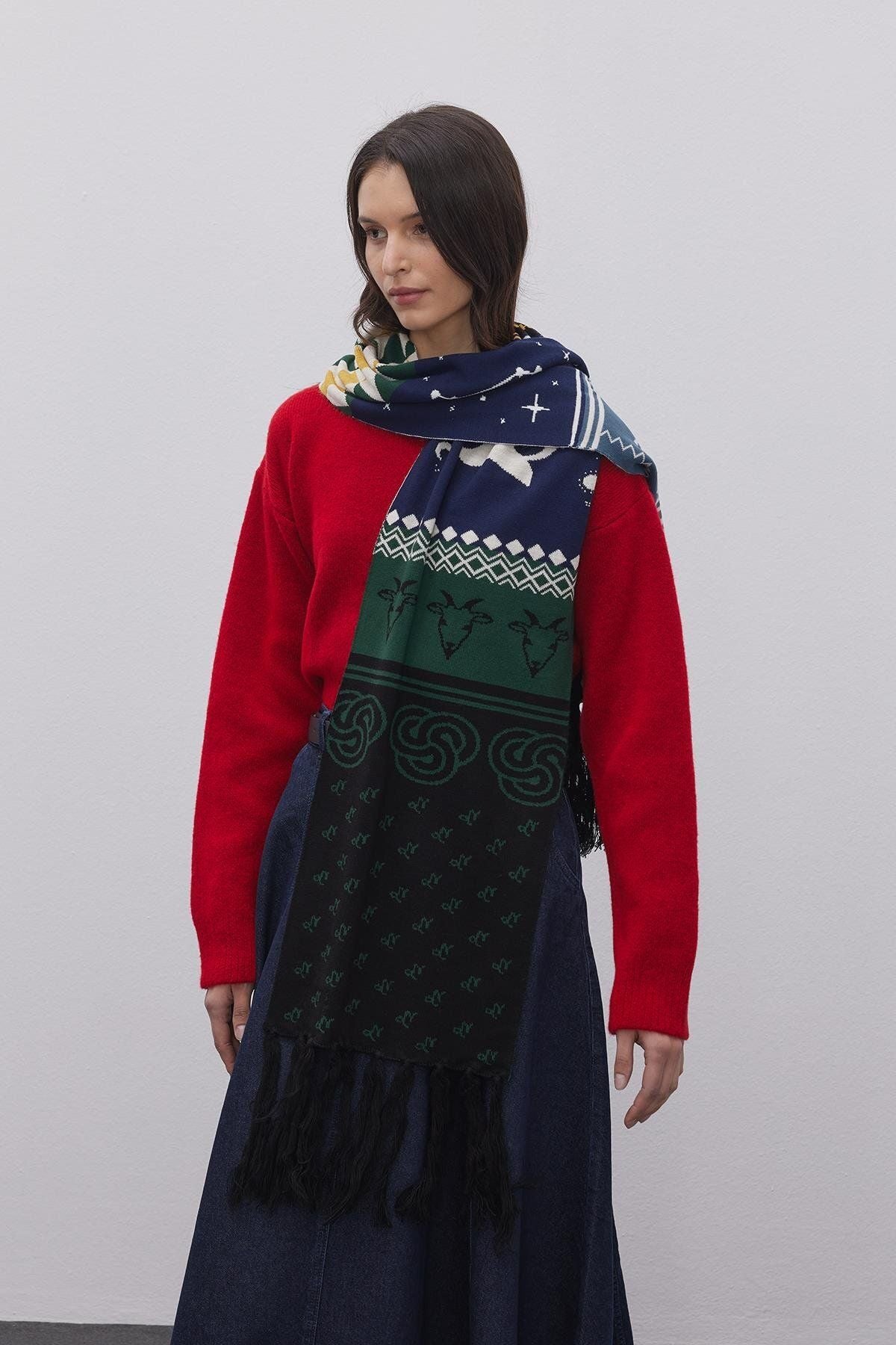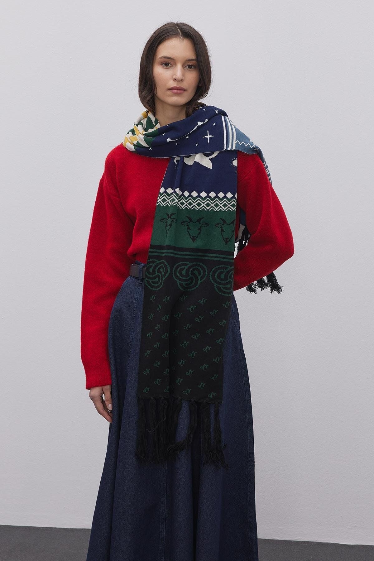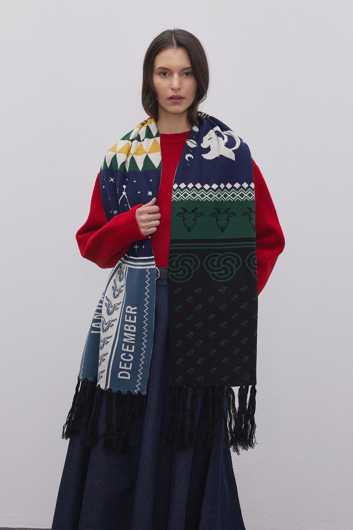 Oğlak Burcu Temalı Örme Uzun Atkı Desenli