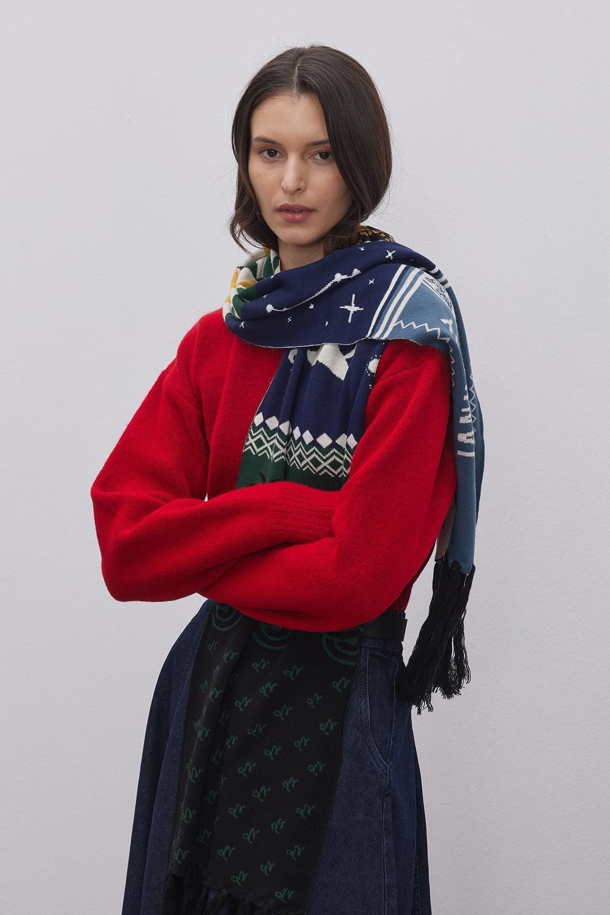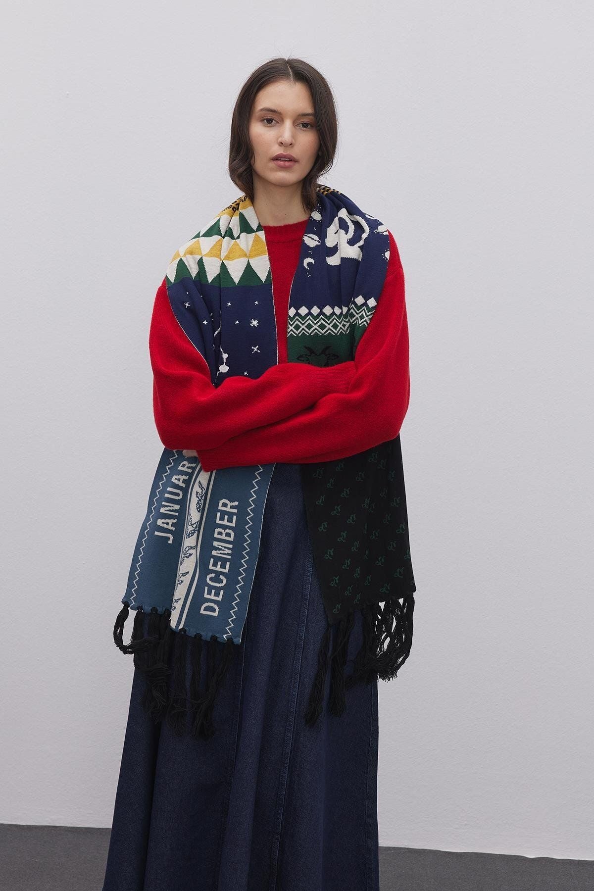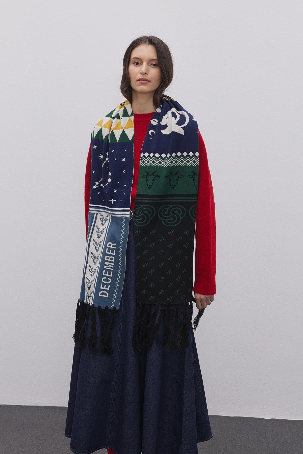 Oğlak Burcu Temalı Örme Uzun Atkı Desenli
