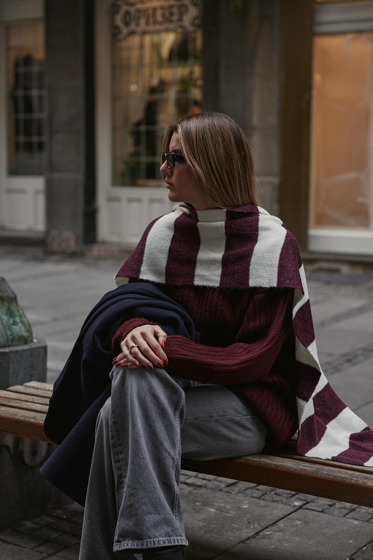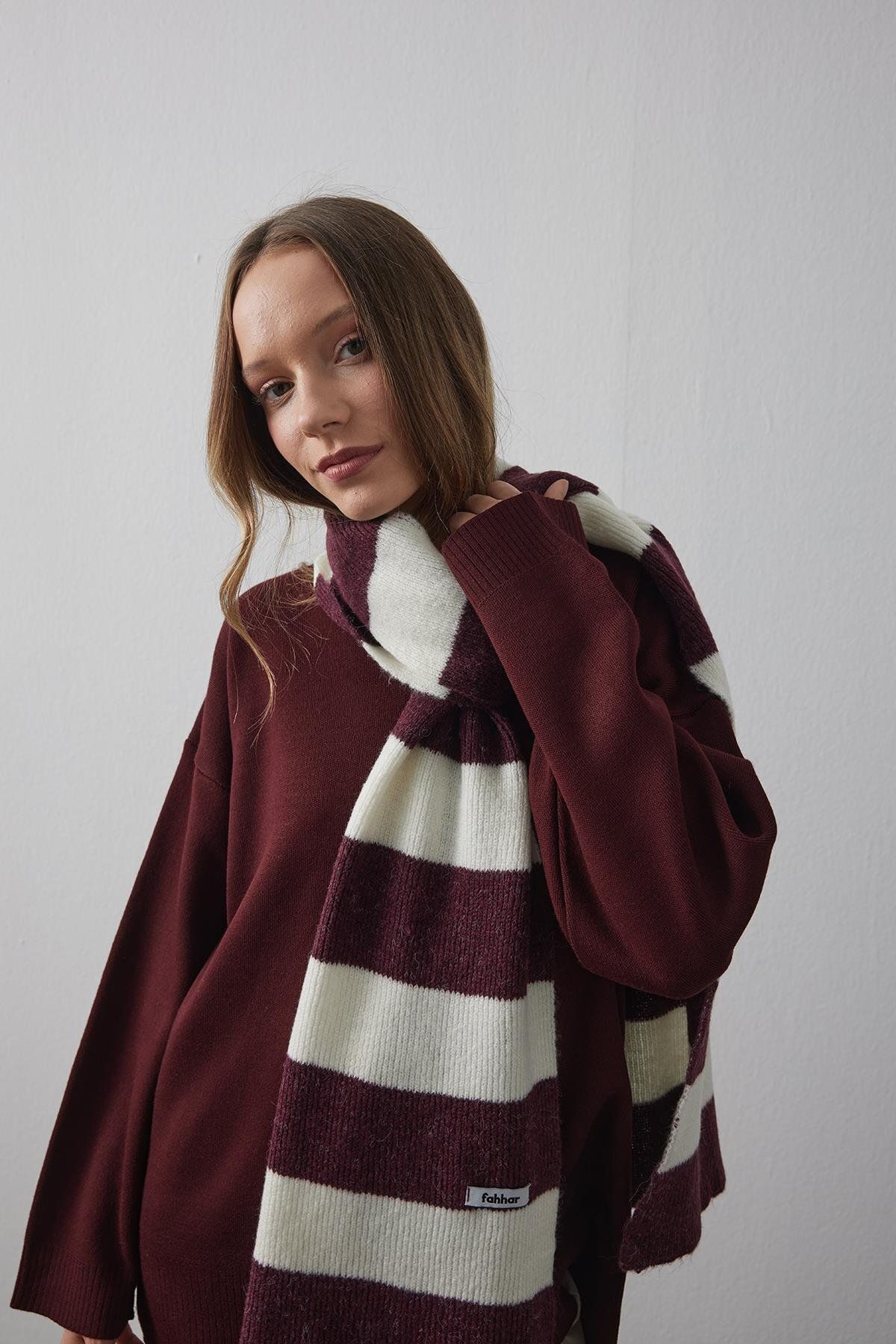 Tiftik Karışımlı Çizgili Atkı Bordo