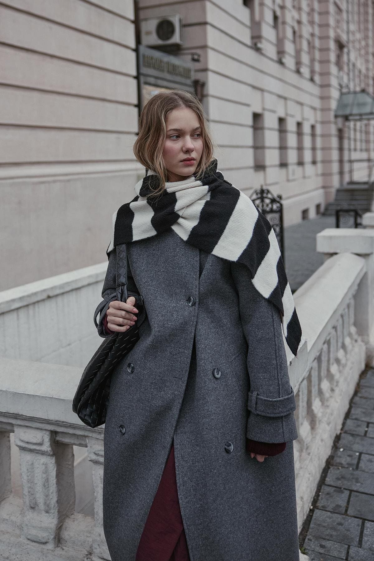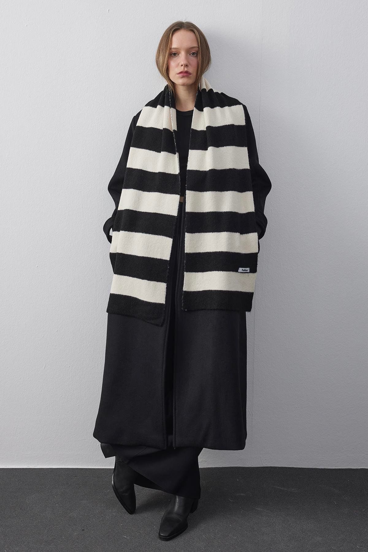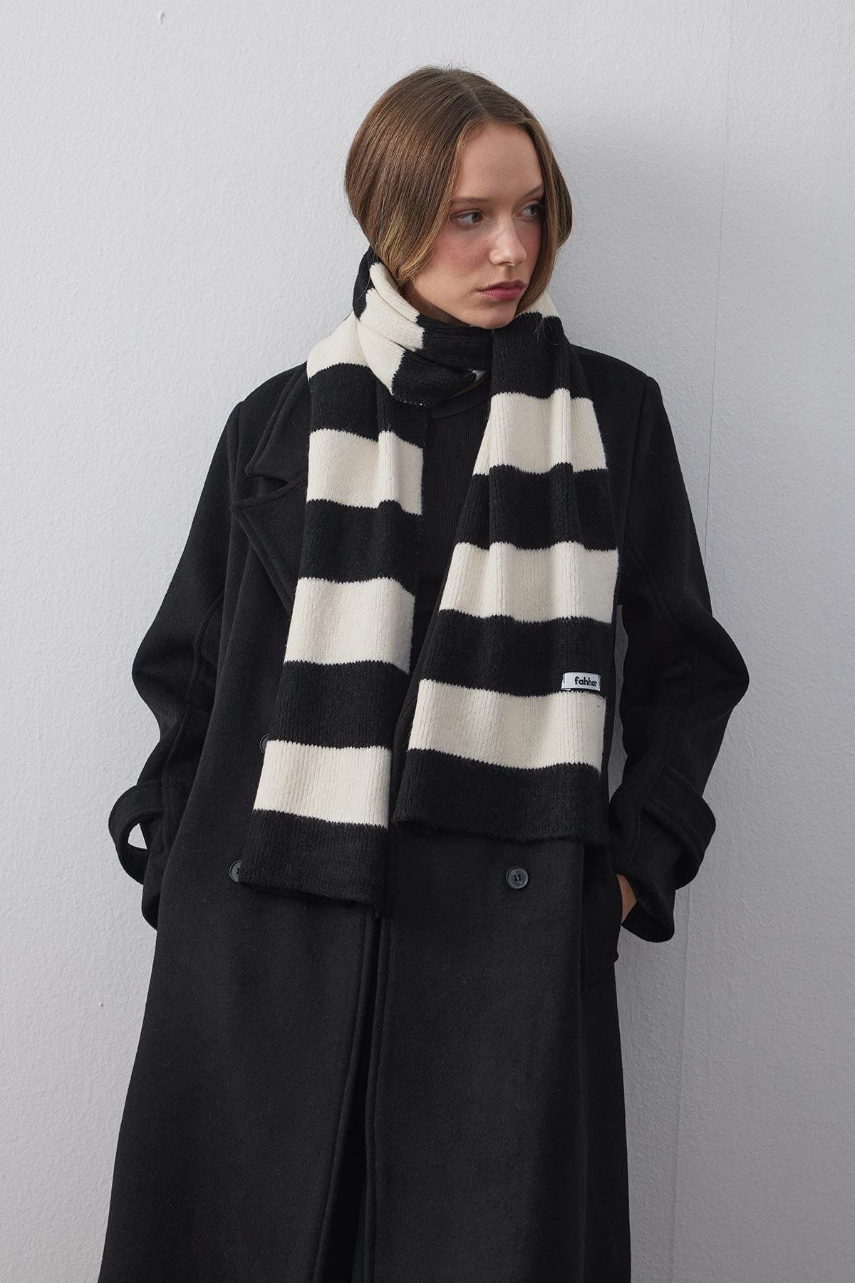 Tiftik Karışımlı Çizgili Atkı Siyah