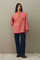 Seyyar Yakalı Desenli Kapitone Ceket Kırmızı