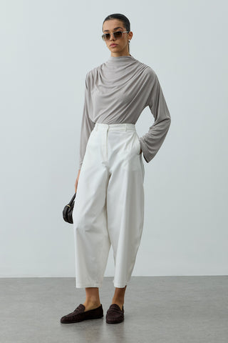 Pileli Tensel Pantolon Kahverengi