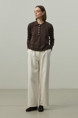 Uzun Kollu Polo Yaka Triko Kahverengi
