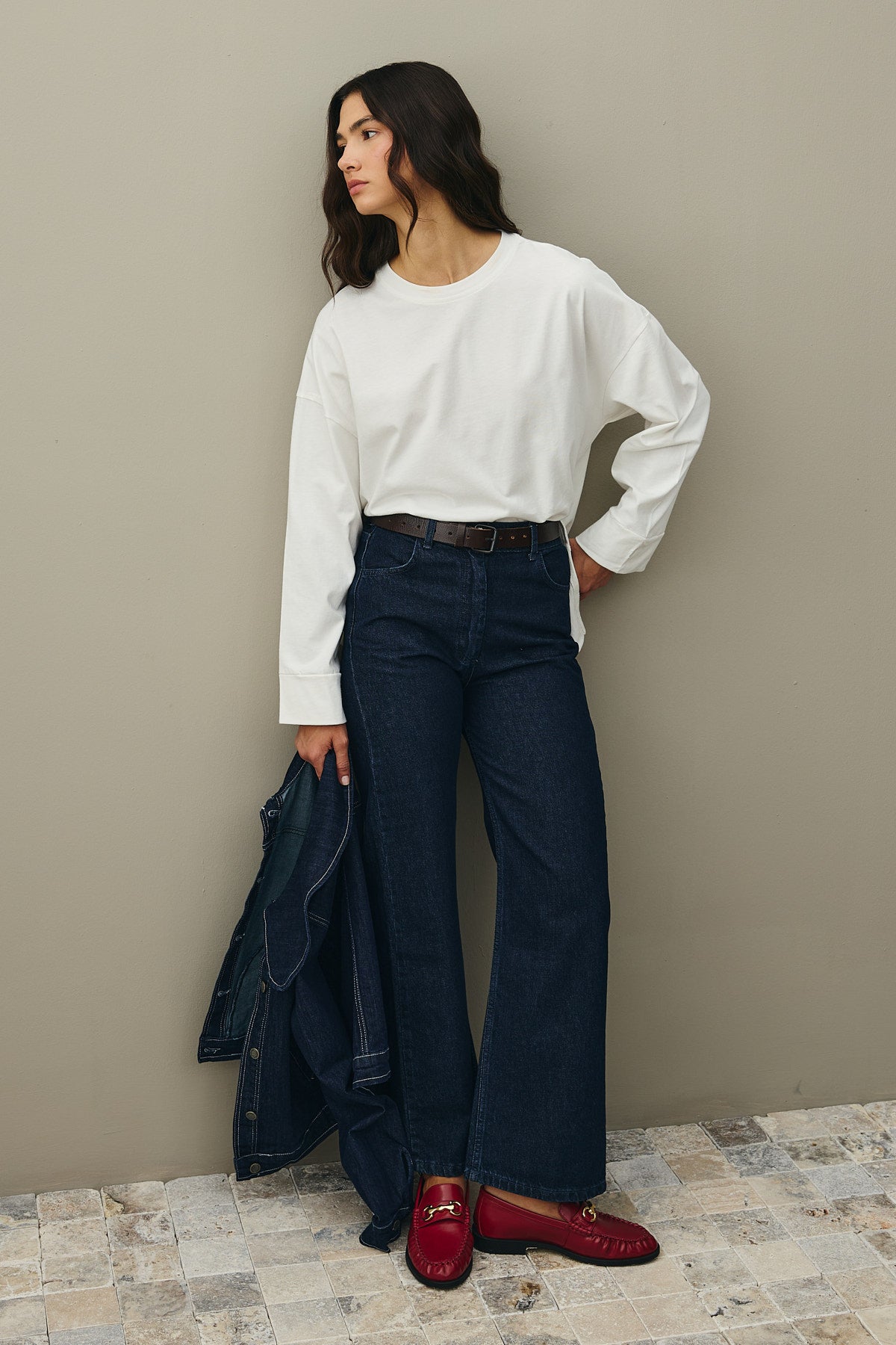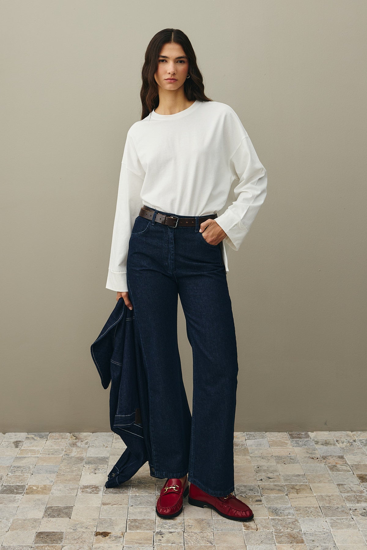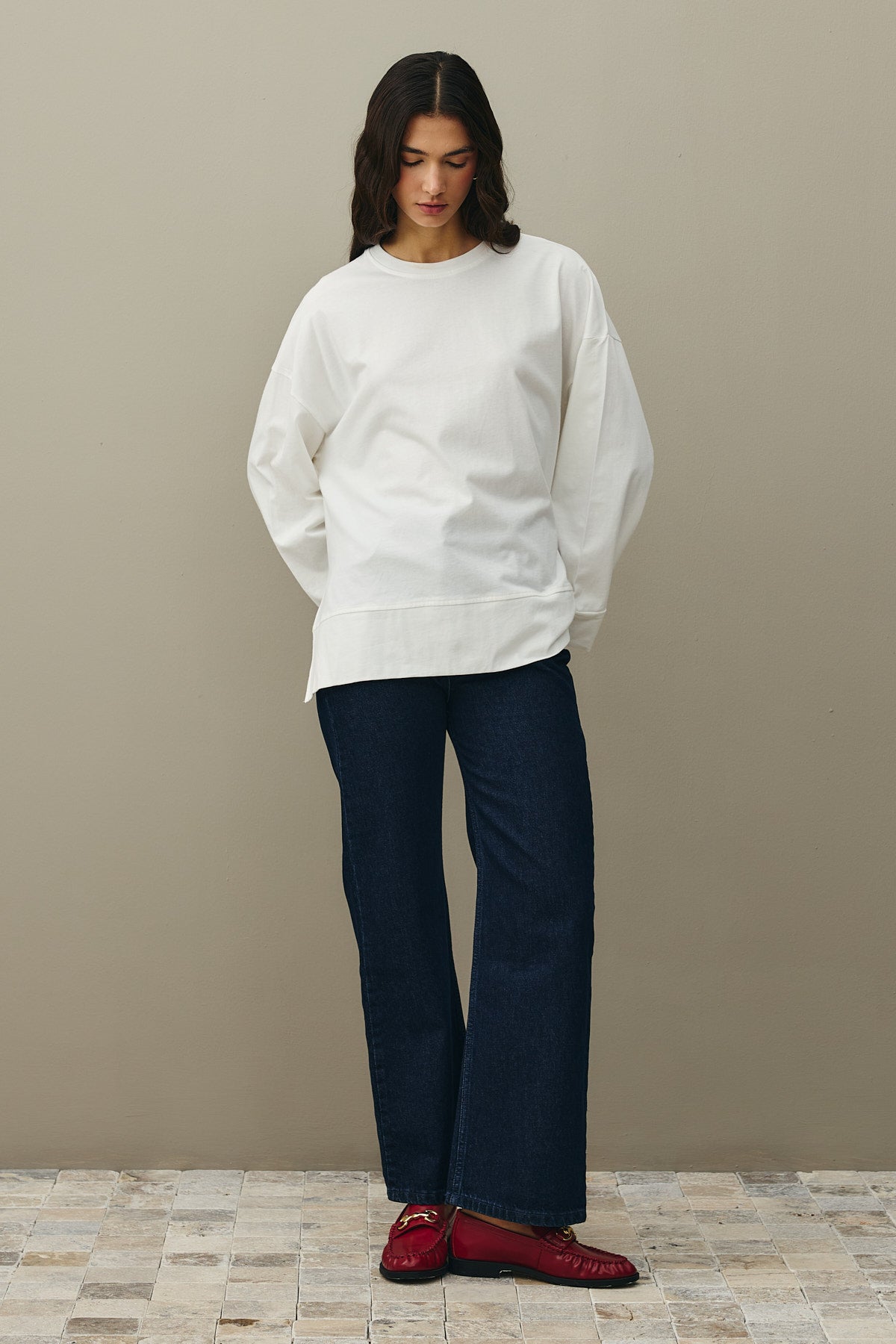 %100 pamuk örme kumaştan, bisiklet yakalı, etek ucu kalın katlama detaylı, uzun kollu, yırtmaç detaylı rahat sweatshirt 1(36-38)Beden: Uzunluk:72 cm, Arkasının uzunluğu: 76 cm, Kol Uzunluğu:50 cm , İki Omuz Arası Mesafe: 64 cm , Göğüs:60 cm, Bel :58 cm. 2(40-42)Beden: Uzunluk:74 cm, Arkasının uzunluğu: 78 cm, Kol Uzunluğu:52 cm , İki Omuz Arası Mesafe: 66 cm , Göğüs:62 cm, Bel :60 cm.