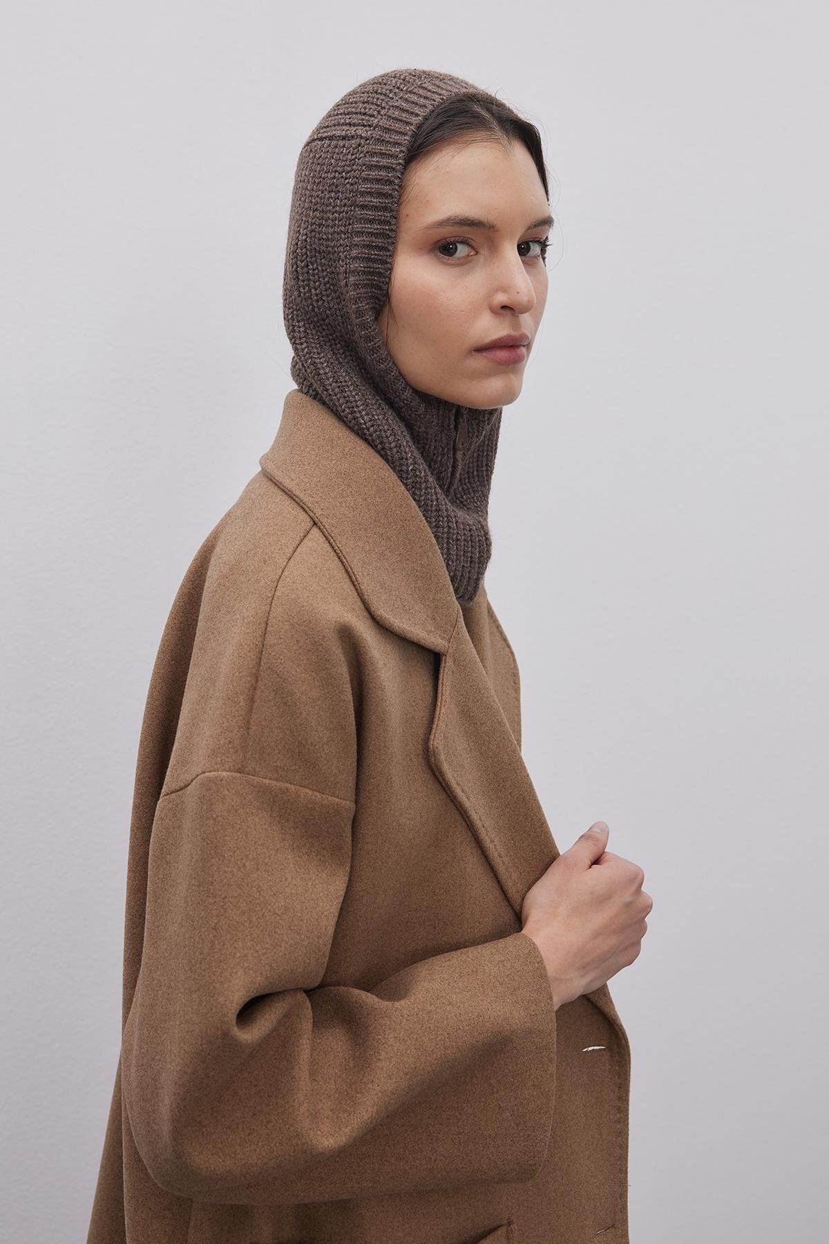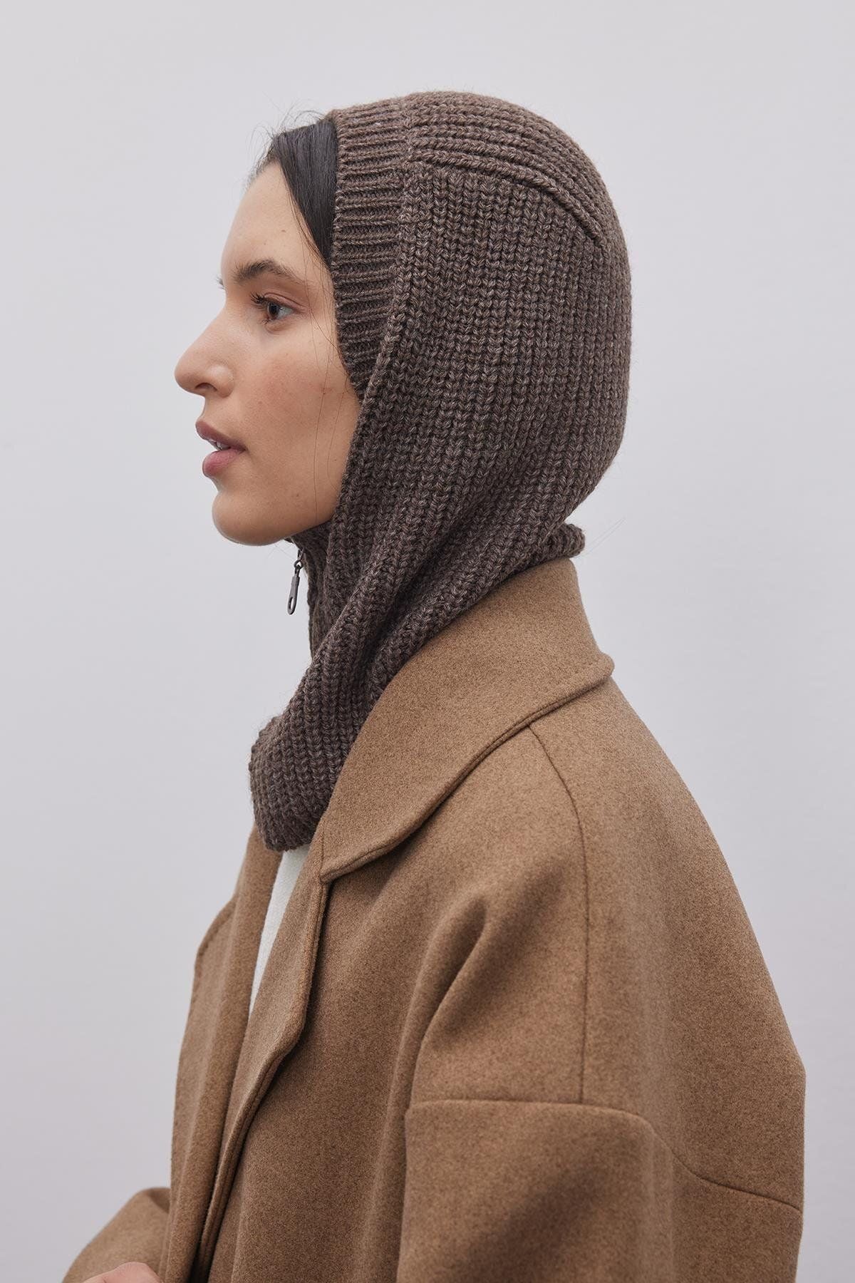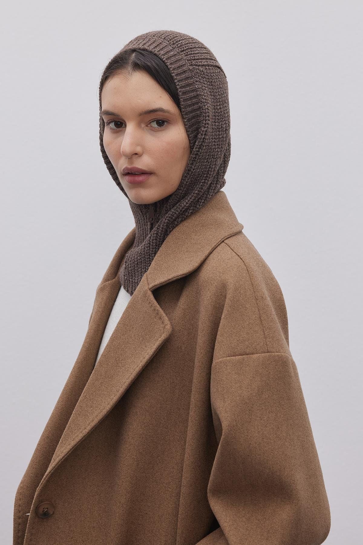 Fermuarlı Kadın Balaclava Bere Kahverengi