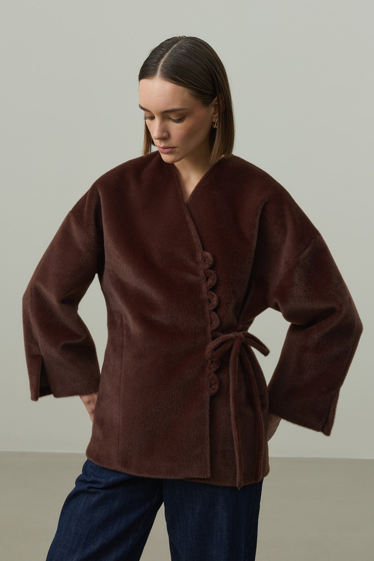 Brit Detaylı Kaşe Ceket Kahverengi