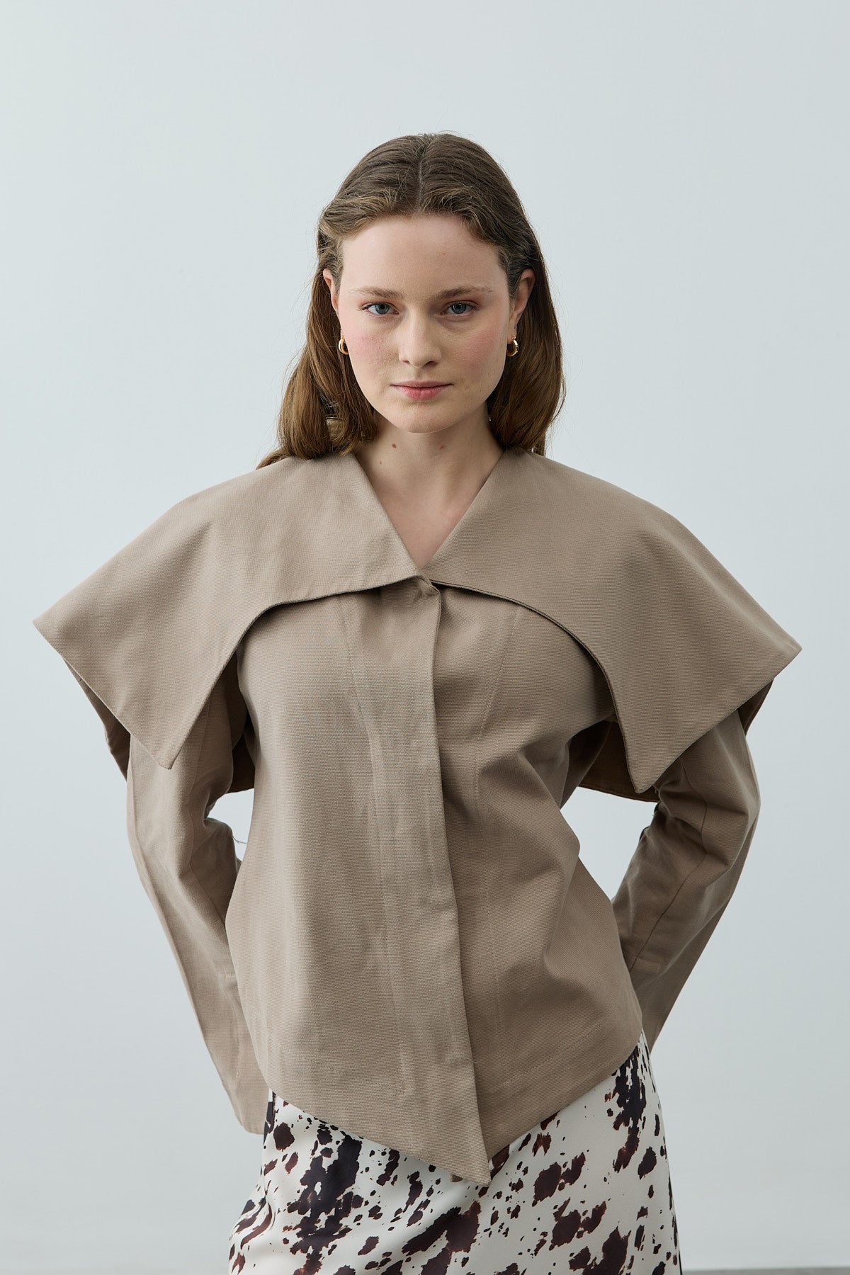Geniş Yakalı Ceket Bej