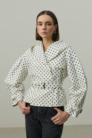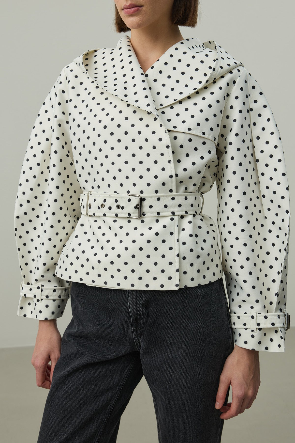 Kapüşonlu Puantiye Trenç Ceket Ekru