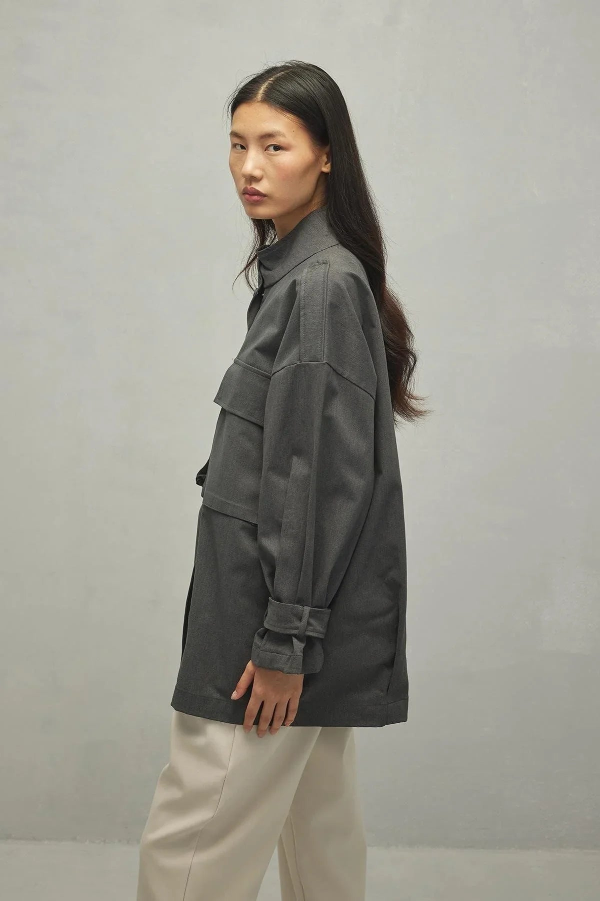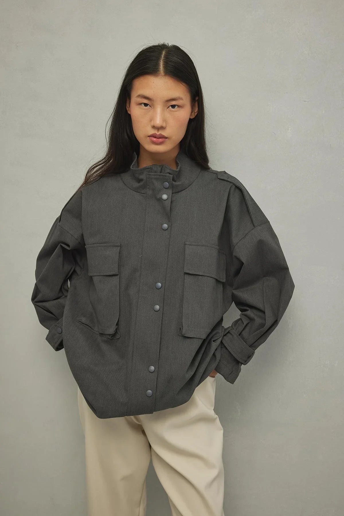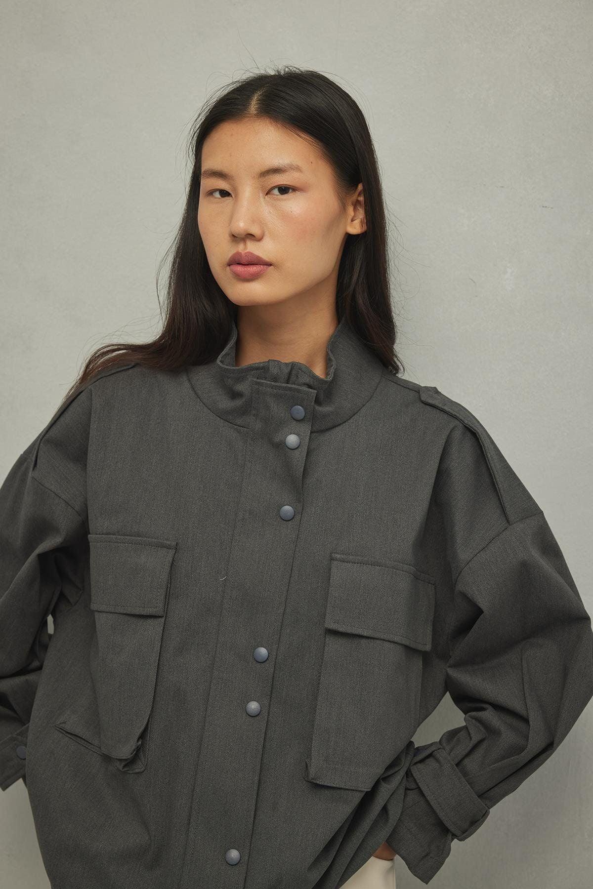 Körük Cepli Kadın Ceket Gri