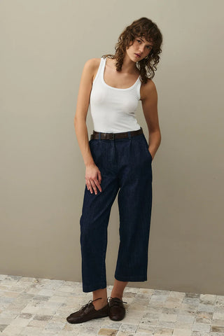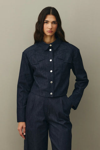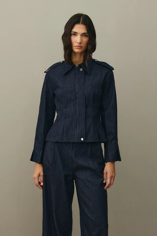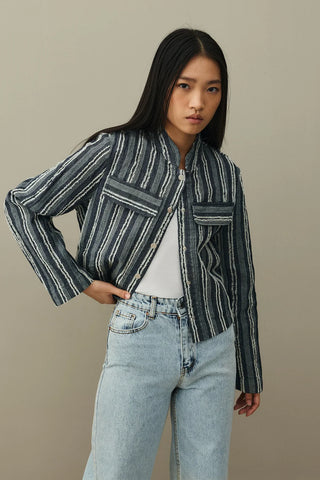 Çizgili Denim Bomb Ceket Koyu Mavi