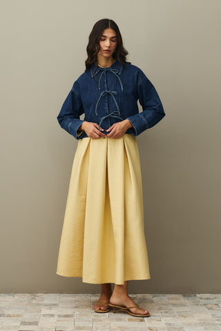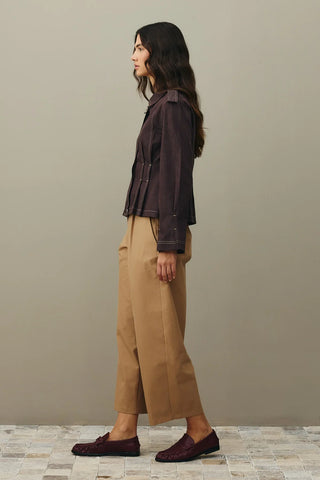 Asimetrik Dikişli Denim Ceket Kahverengi