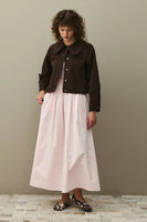 Yuvarlak Yakalı Denim Ceket Kahverengi