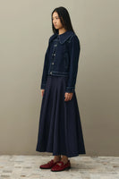 Yuvarlak Yakalı Denim Ceket Koyu Mavi