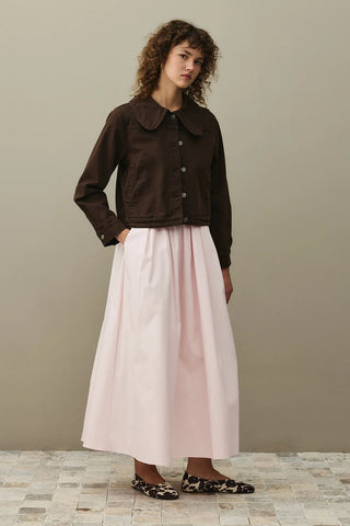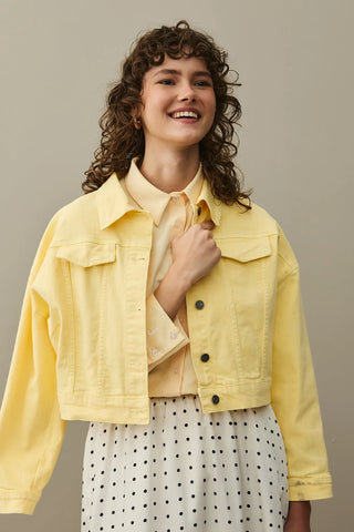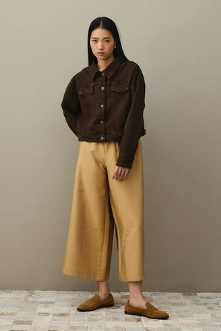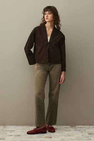 Yuvarlak Yakalı Denim Ceket Kahverengi