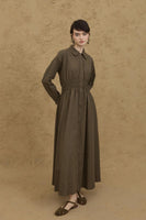 Gömlek yakalı, önü düğme kapamalı, patlı, beli gipeli, %100 pamuk vual dokuma kumaştan, maxi boy elbise. 36 BEDEN Uzunluk: 136 cm, Kol Uzunluğu: 62 cm, İki Omuz Arası Mesafe: 37 cm, Gögüs: 46 cm, Bel: 37 cm.
