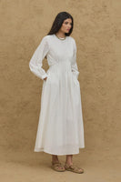 Beli Nervürlü Elbise Ekru