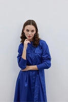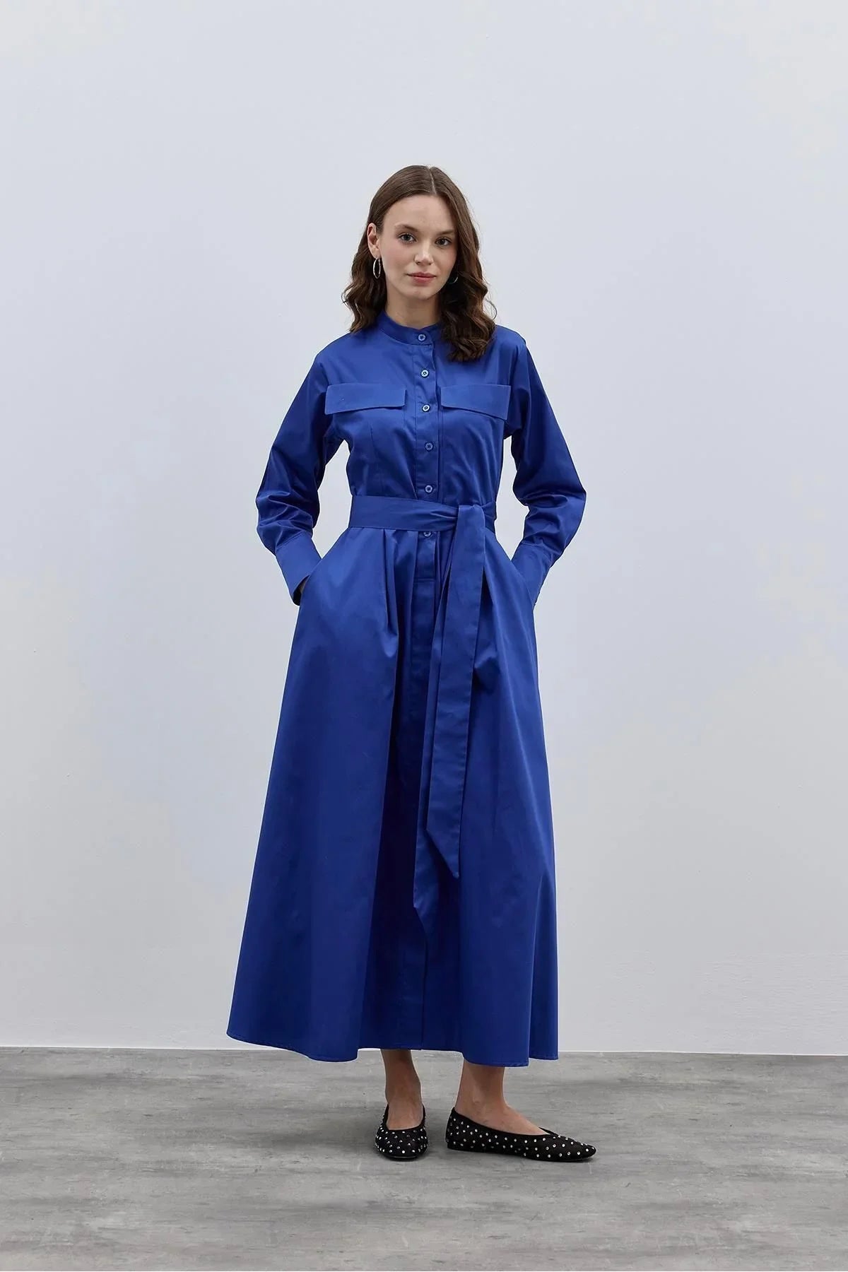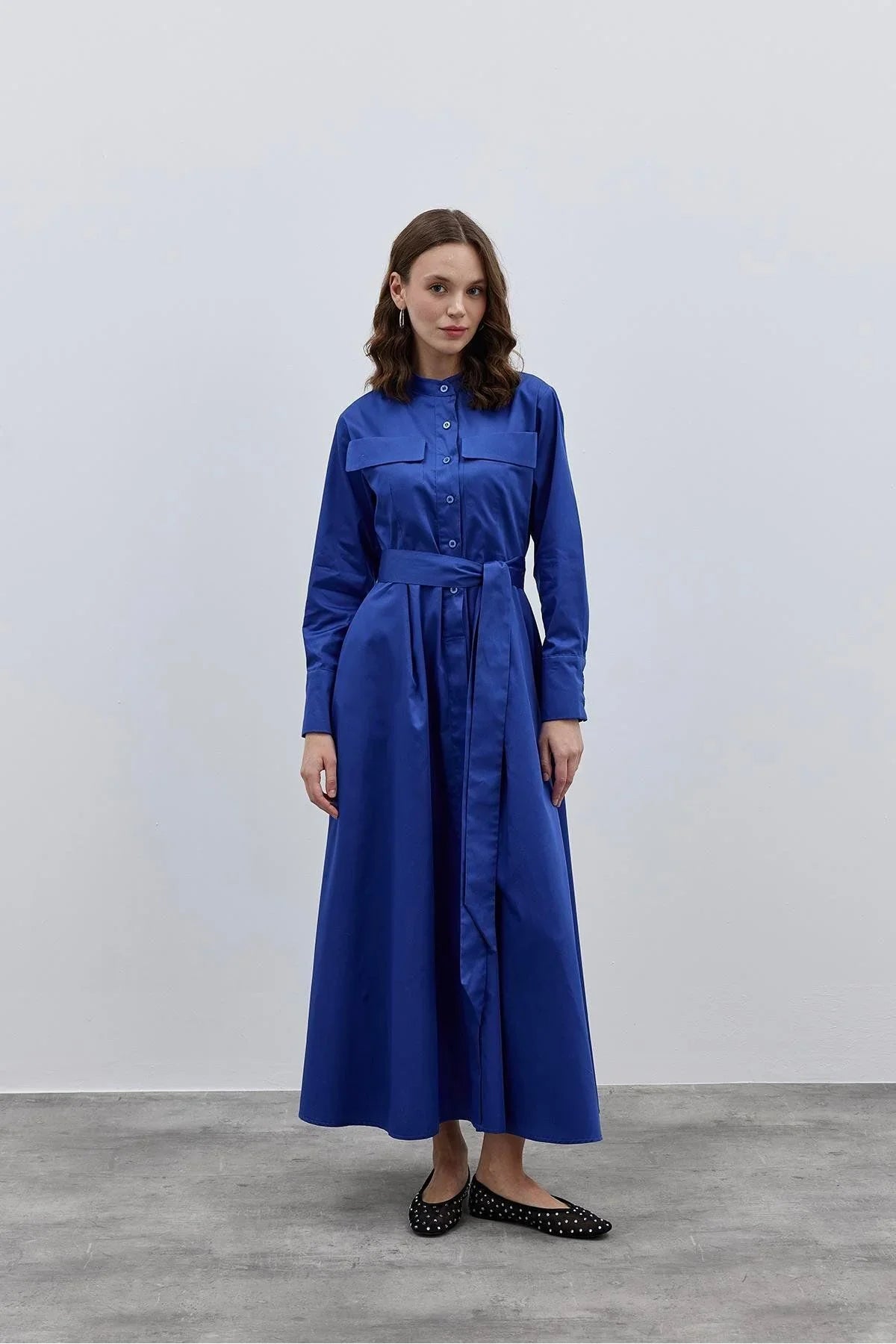 Rahat ve şık bir görünüm için oversize kalıba sahip, hareket özgürlüğü sunan lacivert elbise; Yüksek kaliteli dokuma kumaşı sayesinde uzun süreli kullanım ve konfor sağlar; Belinizi zarifçe vurgulayan kemer detayı ile feminen bir siluet oluşturur; Tesettür giyim koleksiyonunun modern ve şık parçası olarak her yaş grubuna hitap eder; Maxi boyu ile hem günlük kullanım hem de özel günler için ideal uzunlukta bir seçenek sunar;