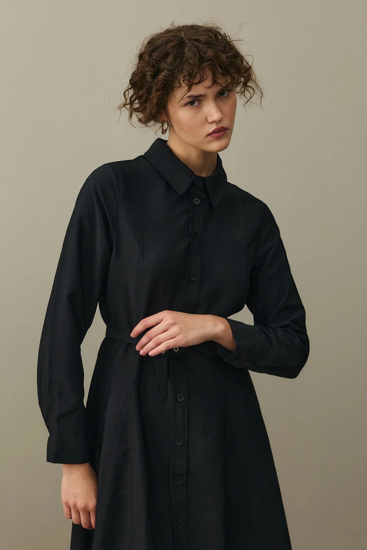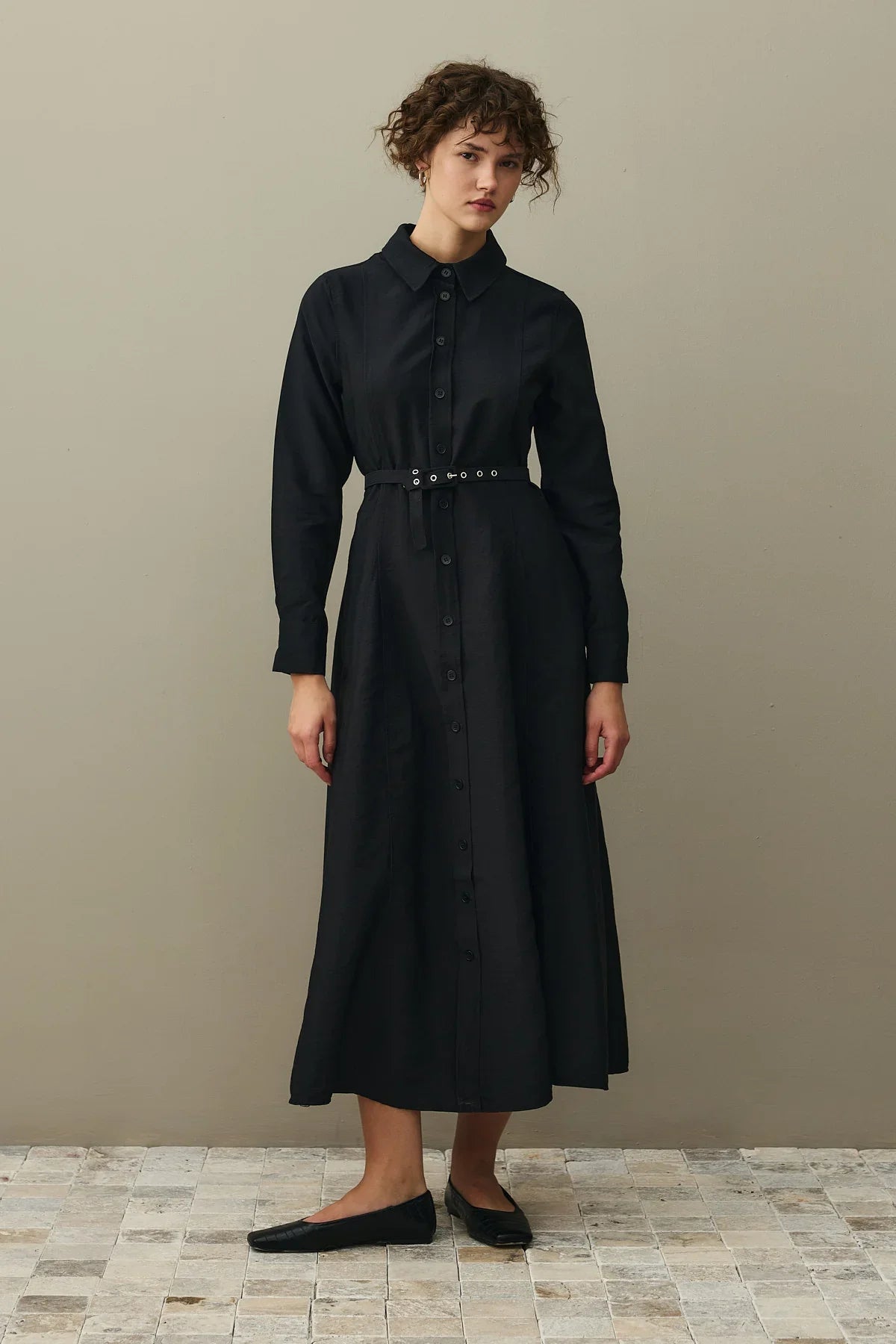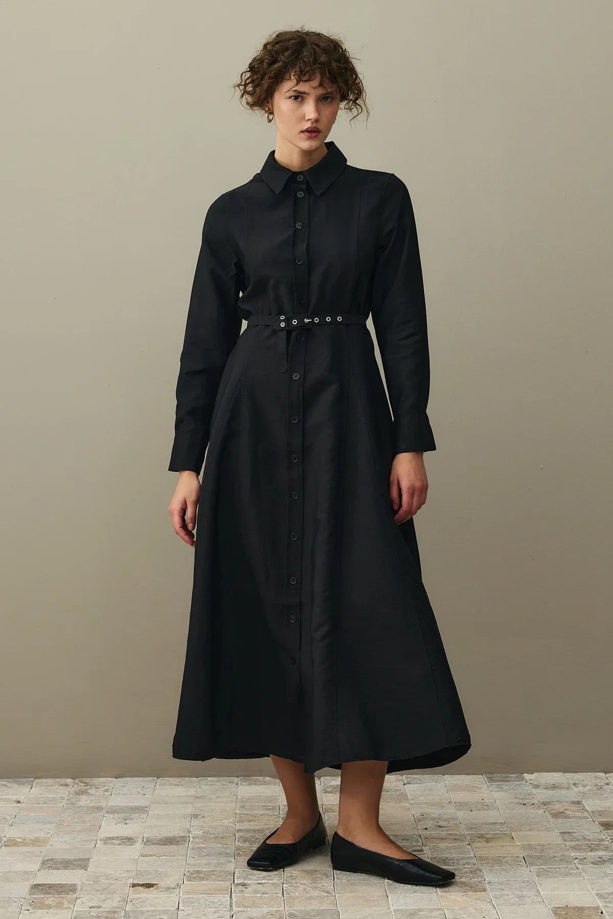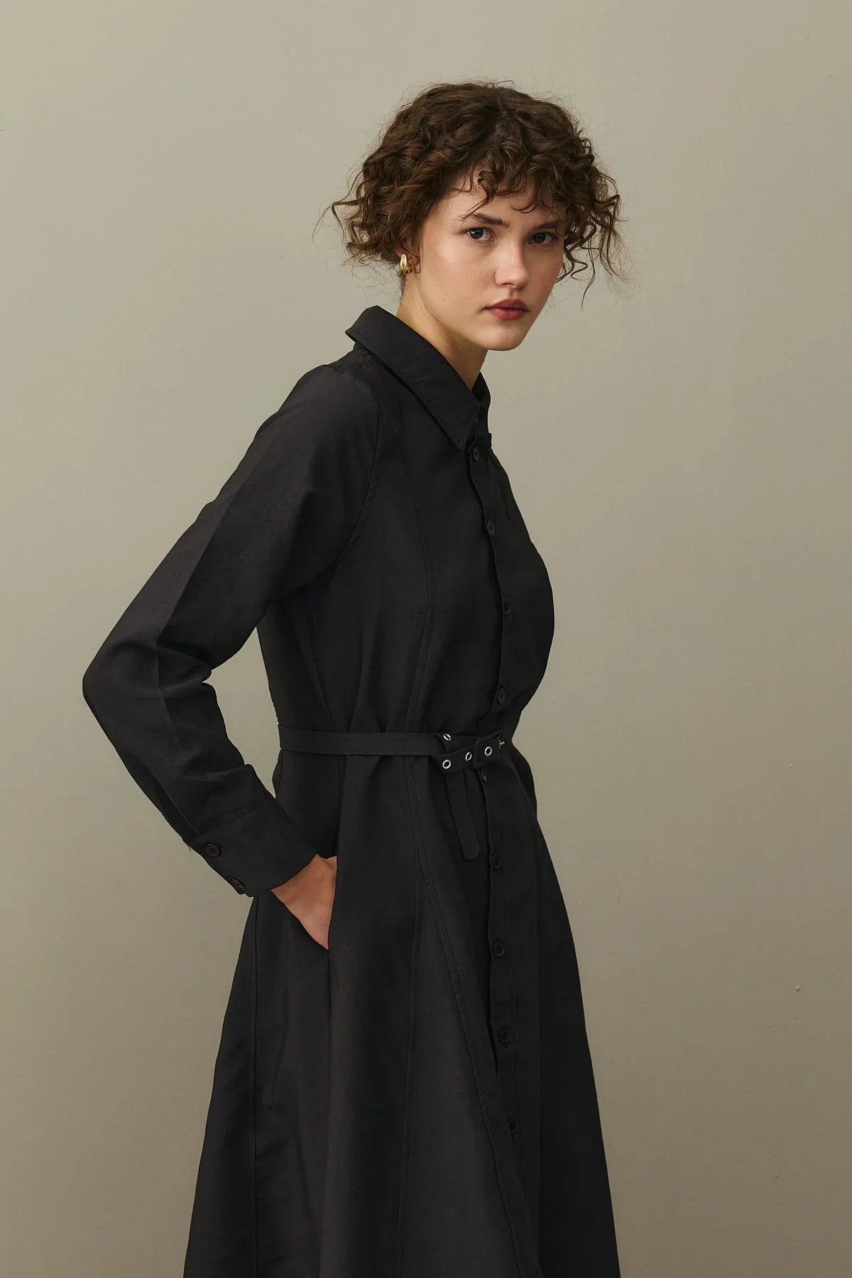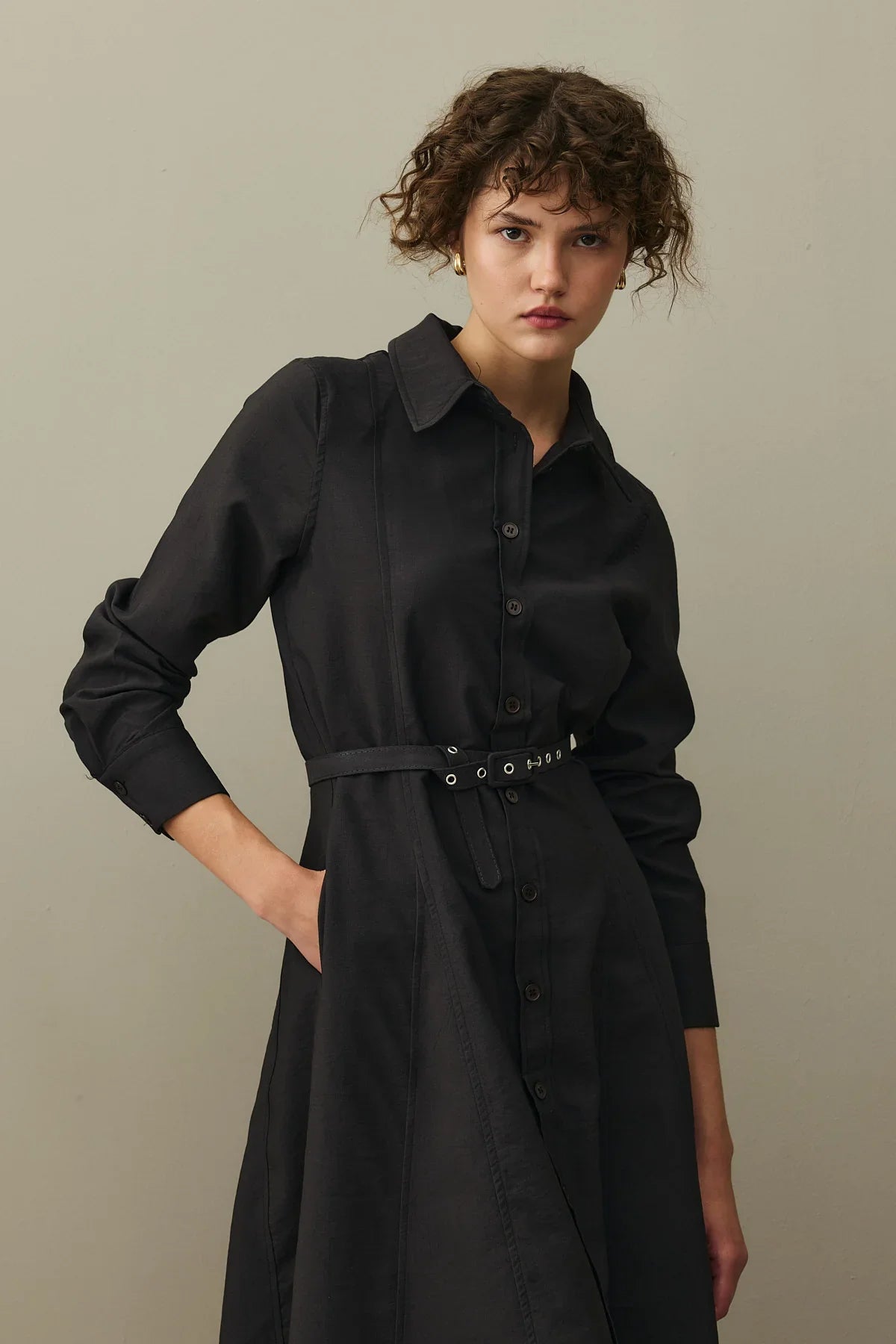 Kemerli Gömlek Elbise Siyah