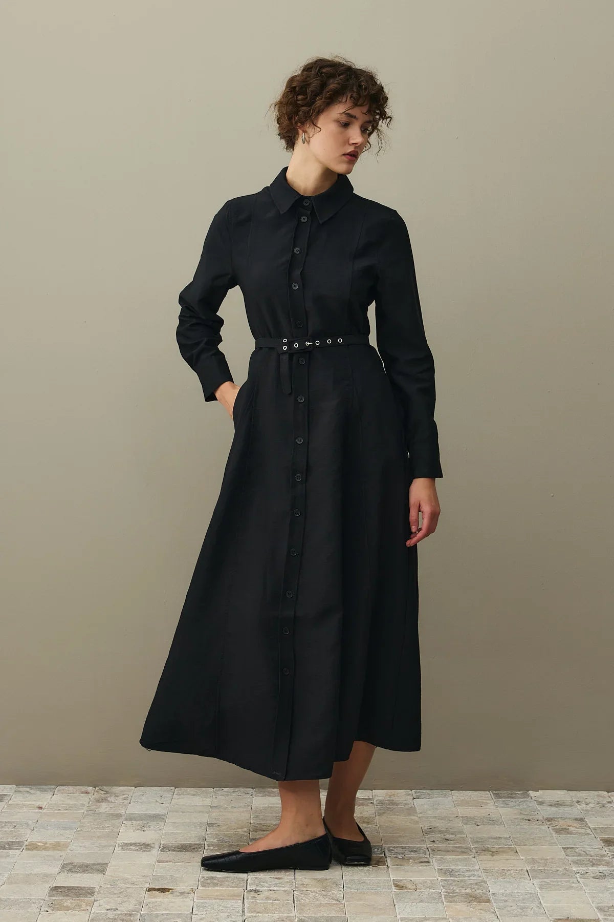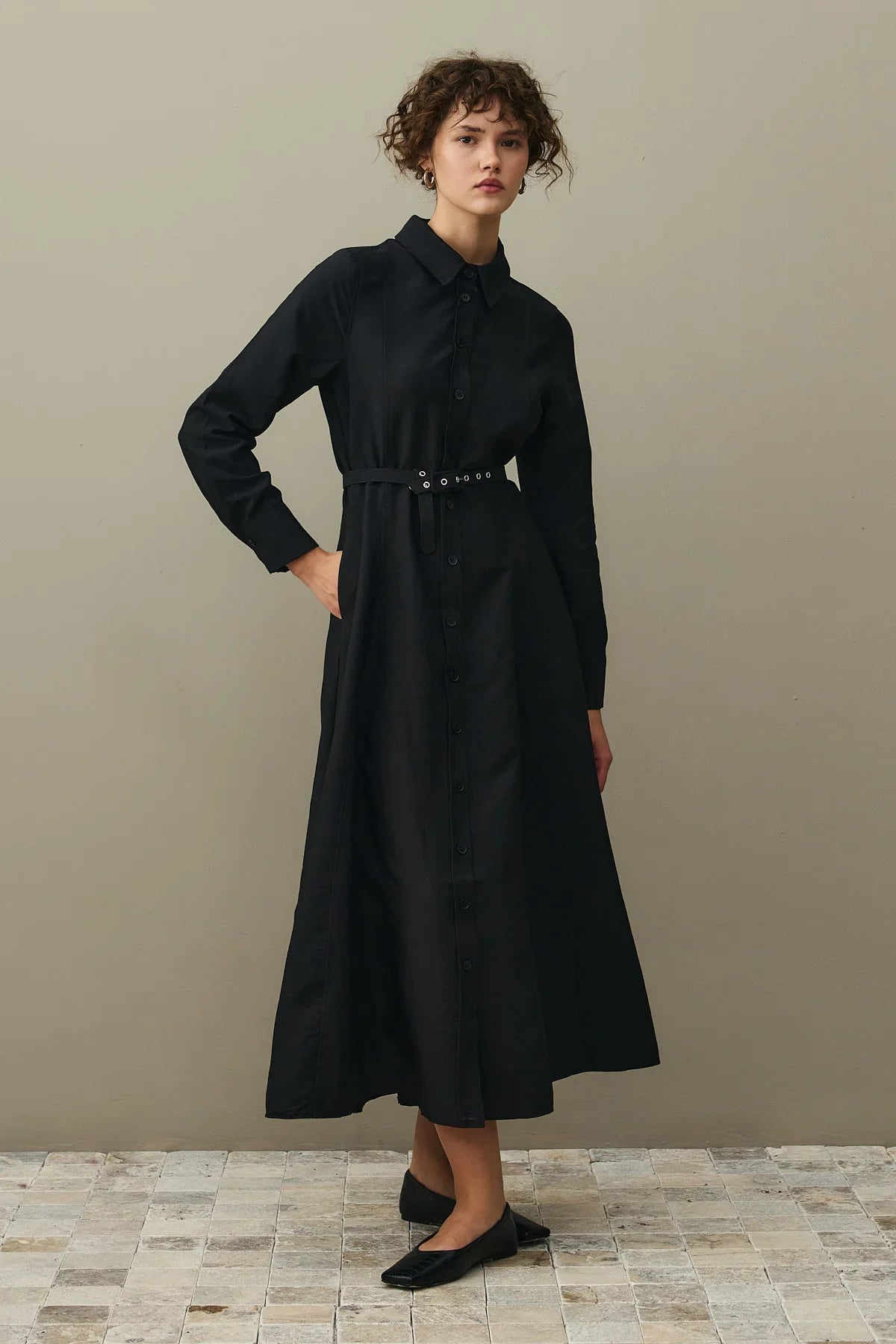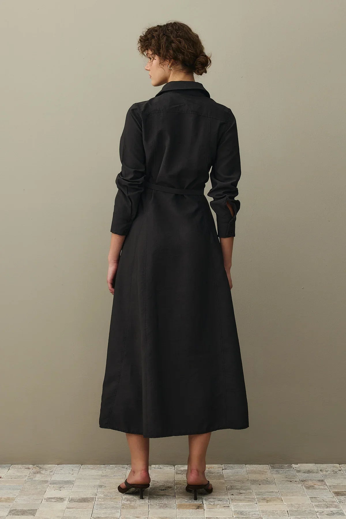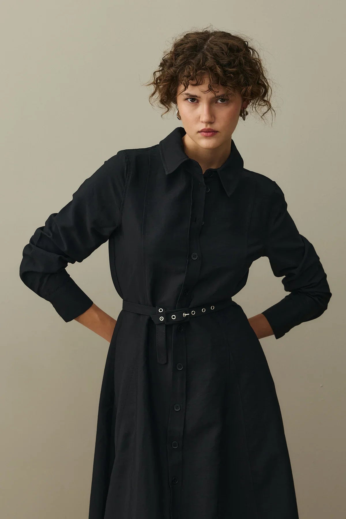 Kemerli Gömlek Elbise Siyah