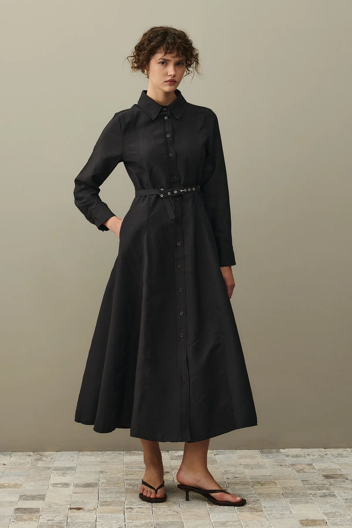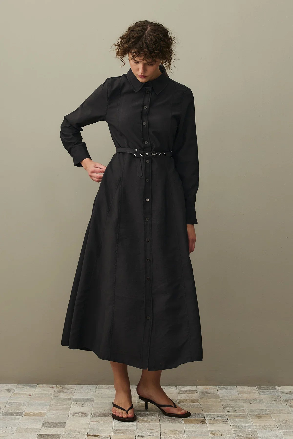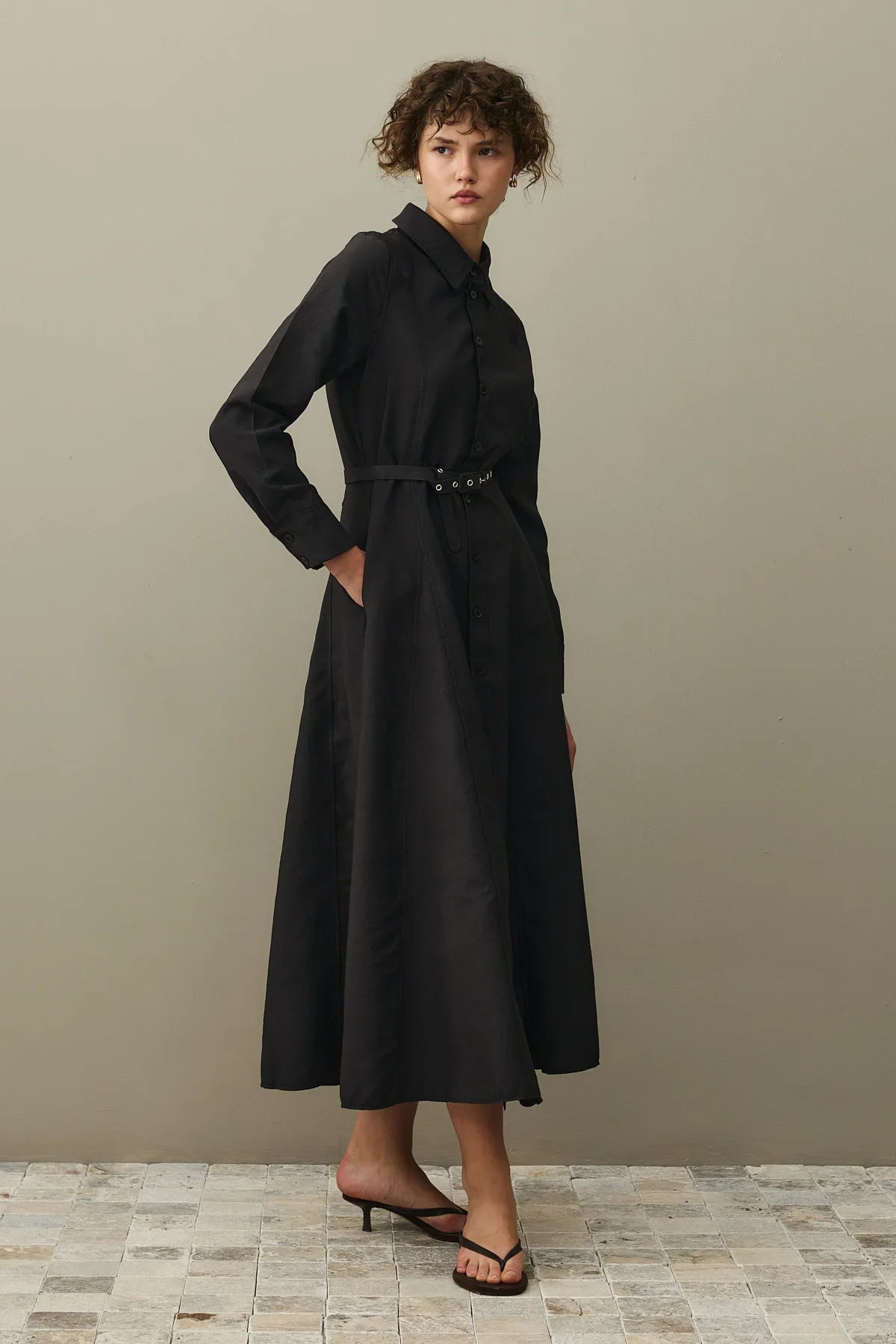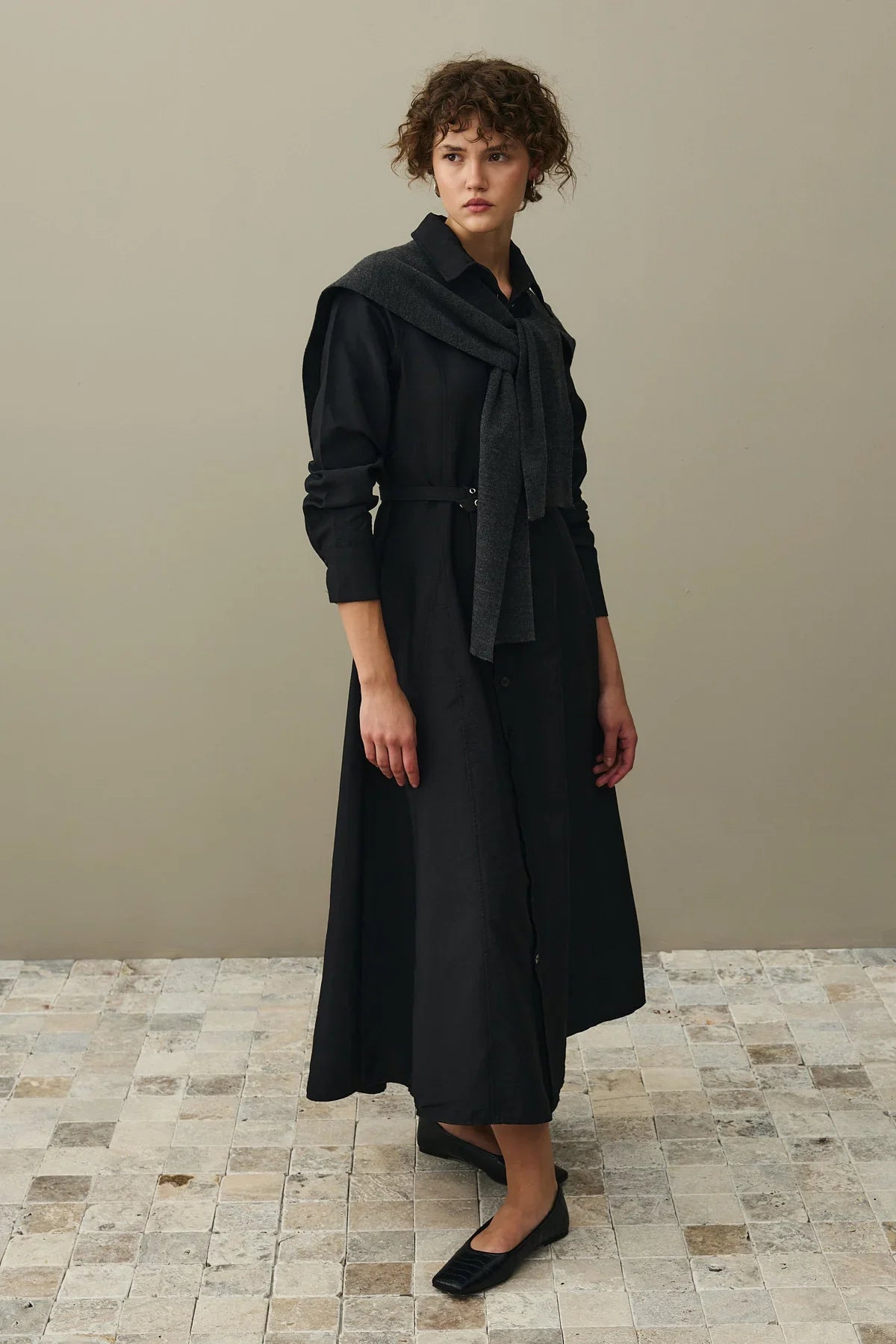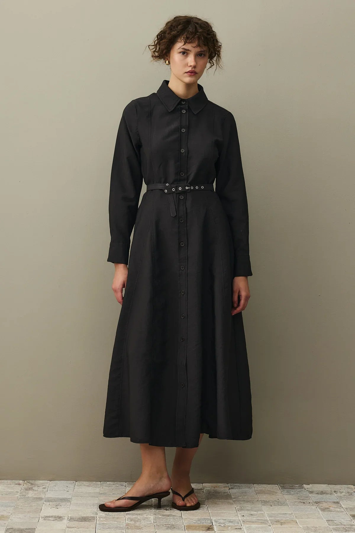 Kemerli Gömlek Elbise Siyah