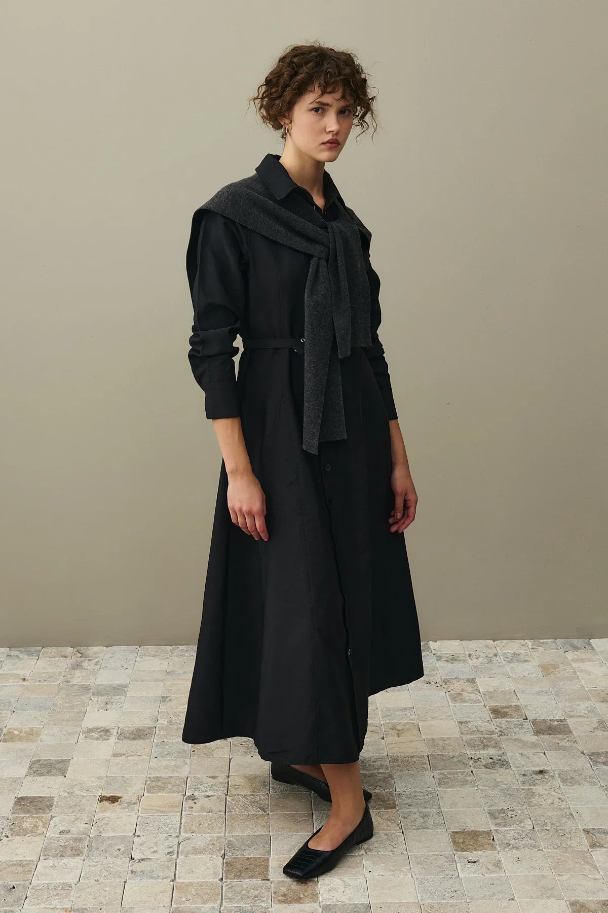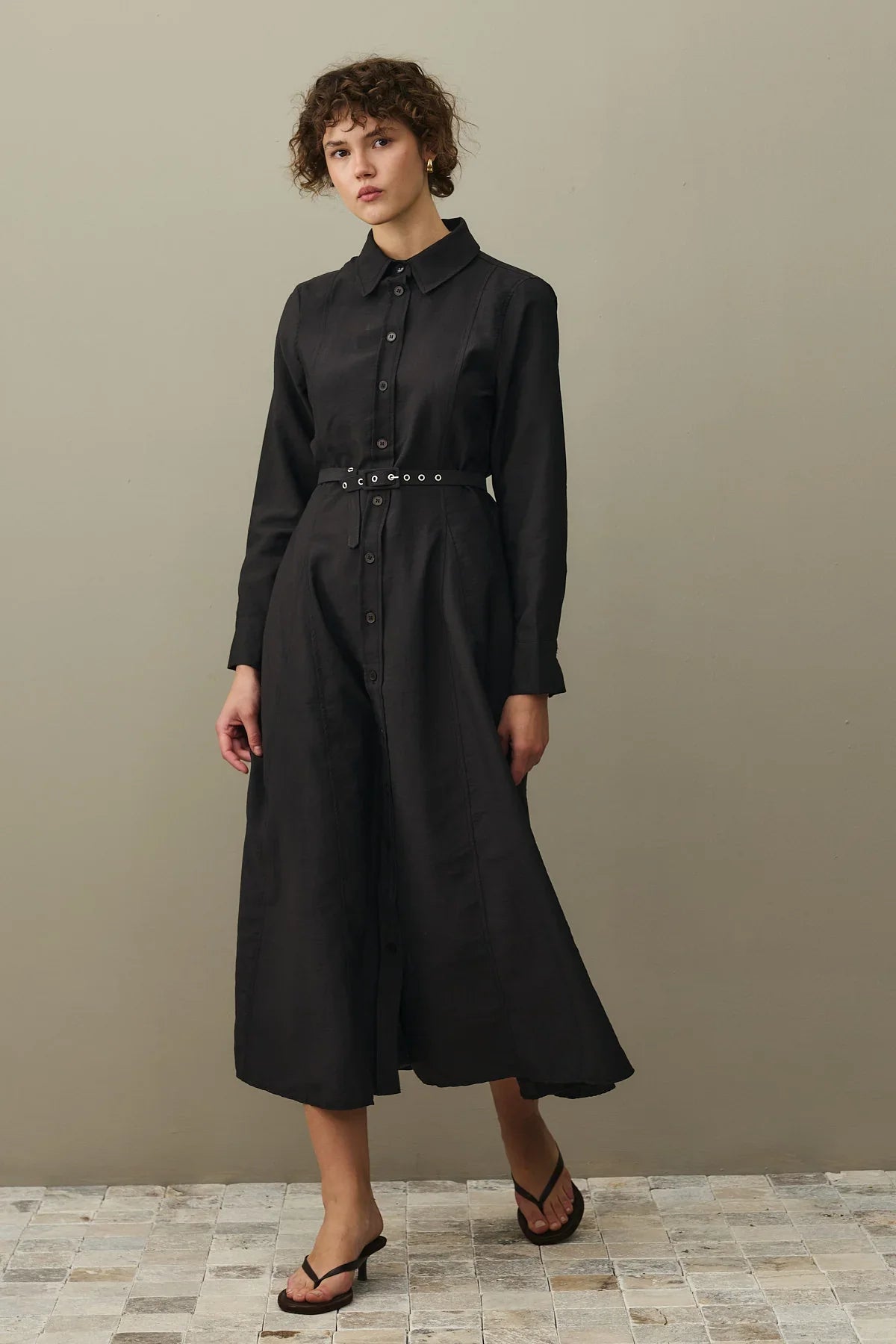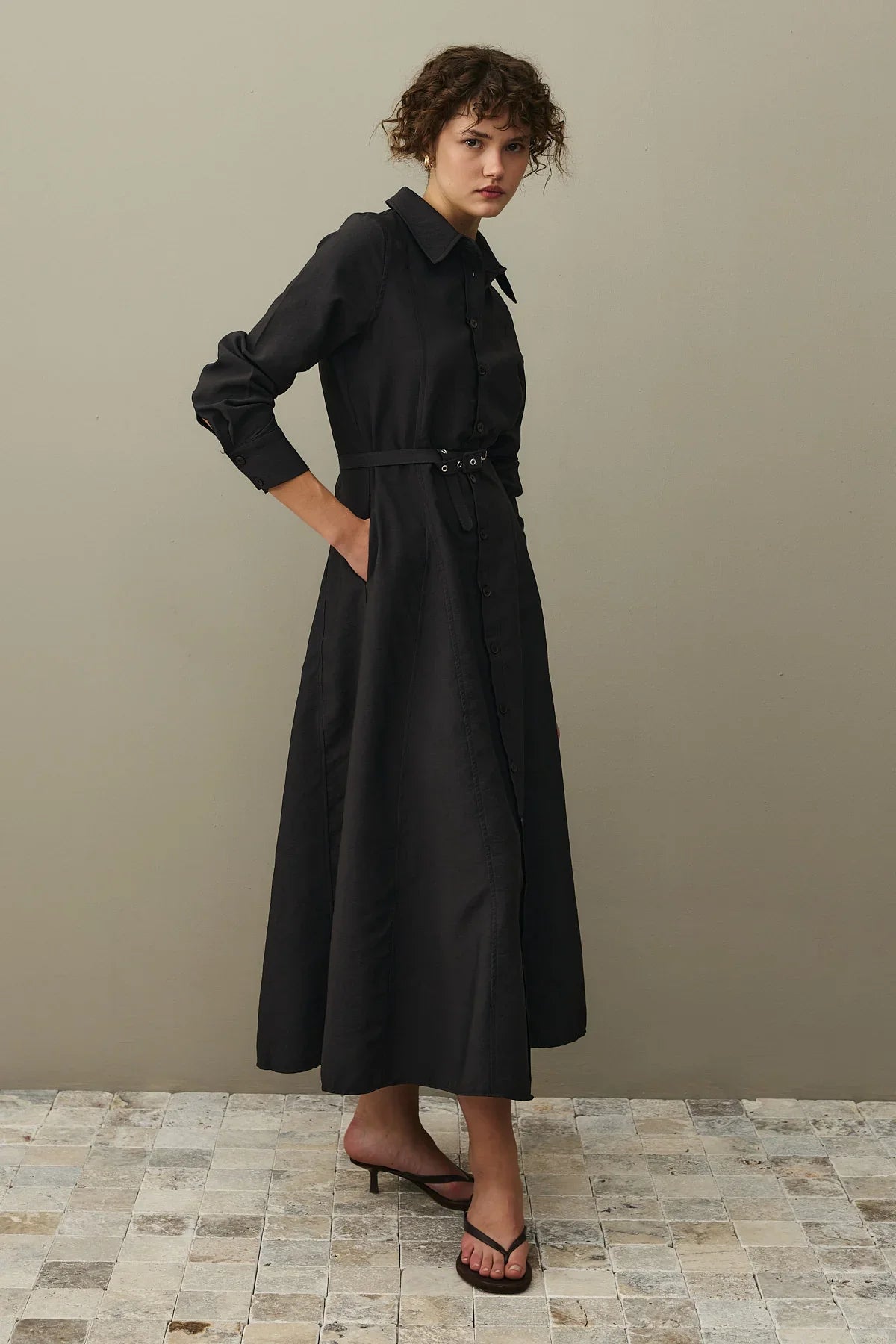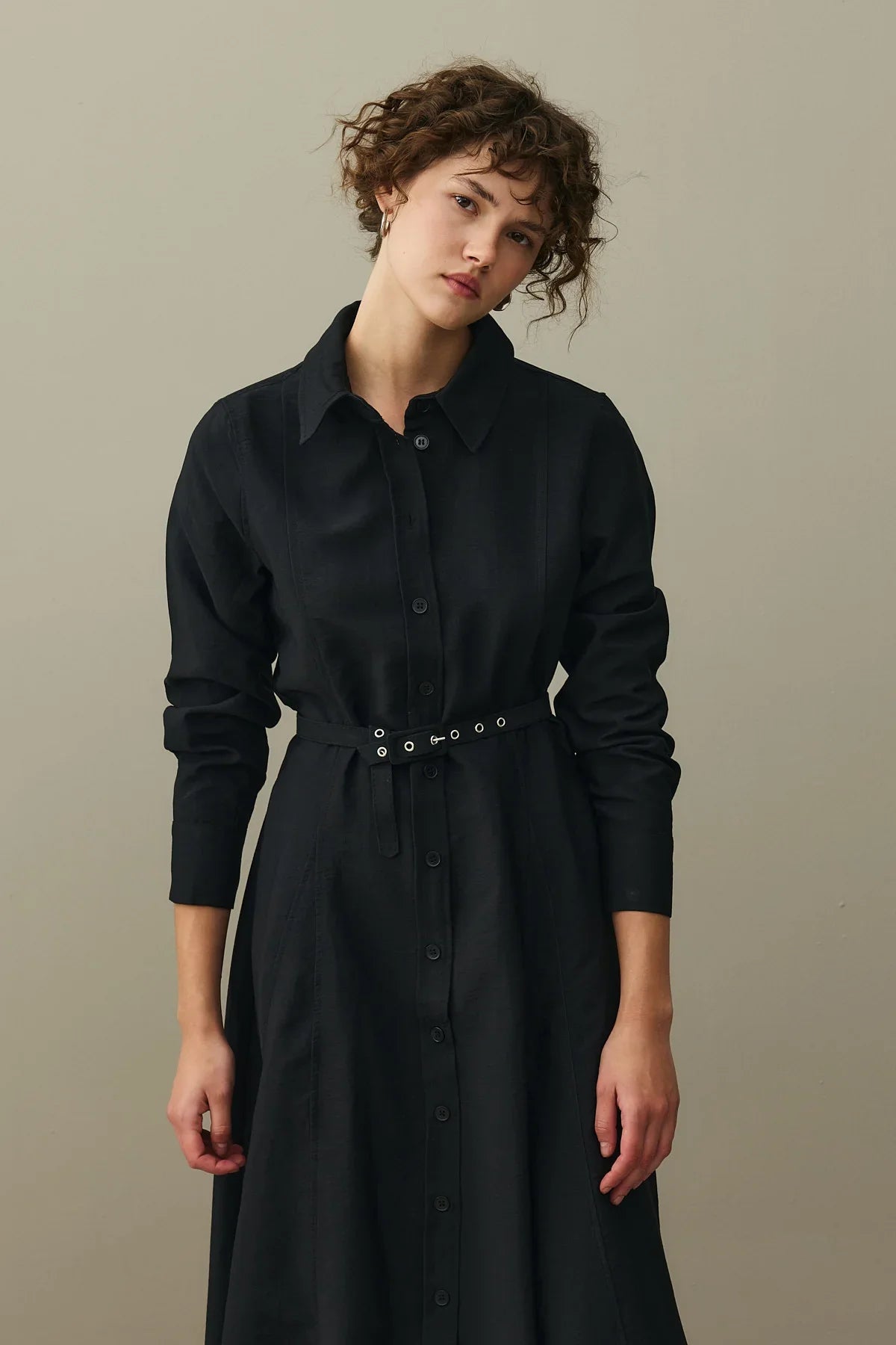Kemerli Gömlek Elbise Siyah
