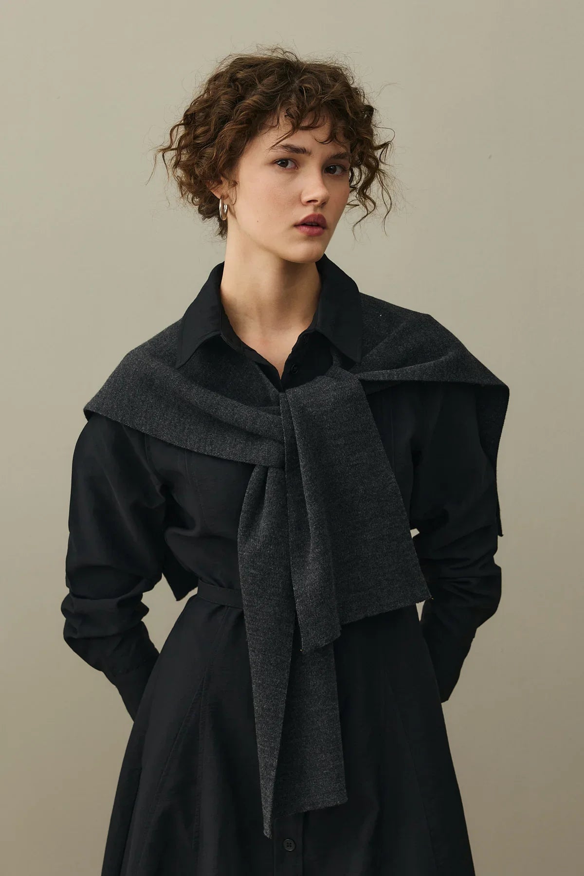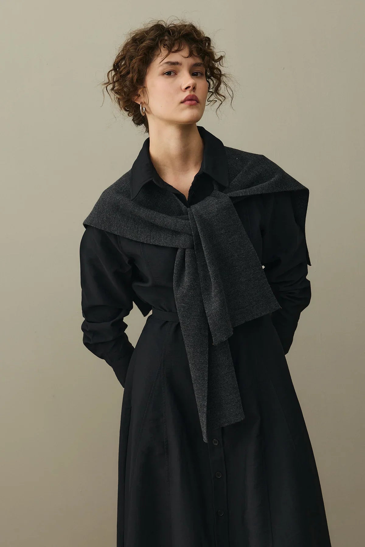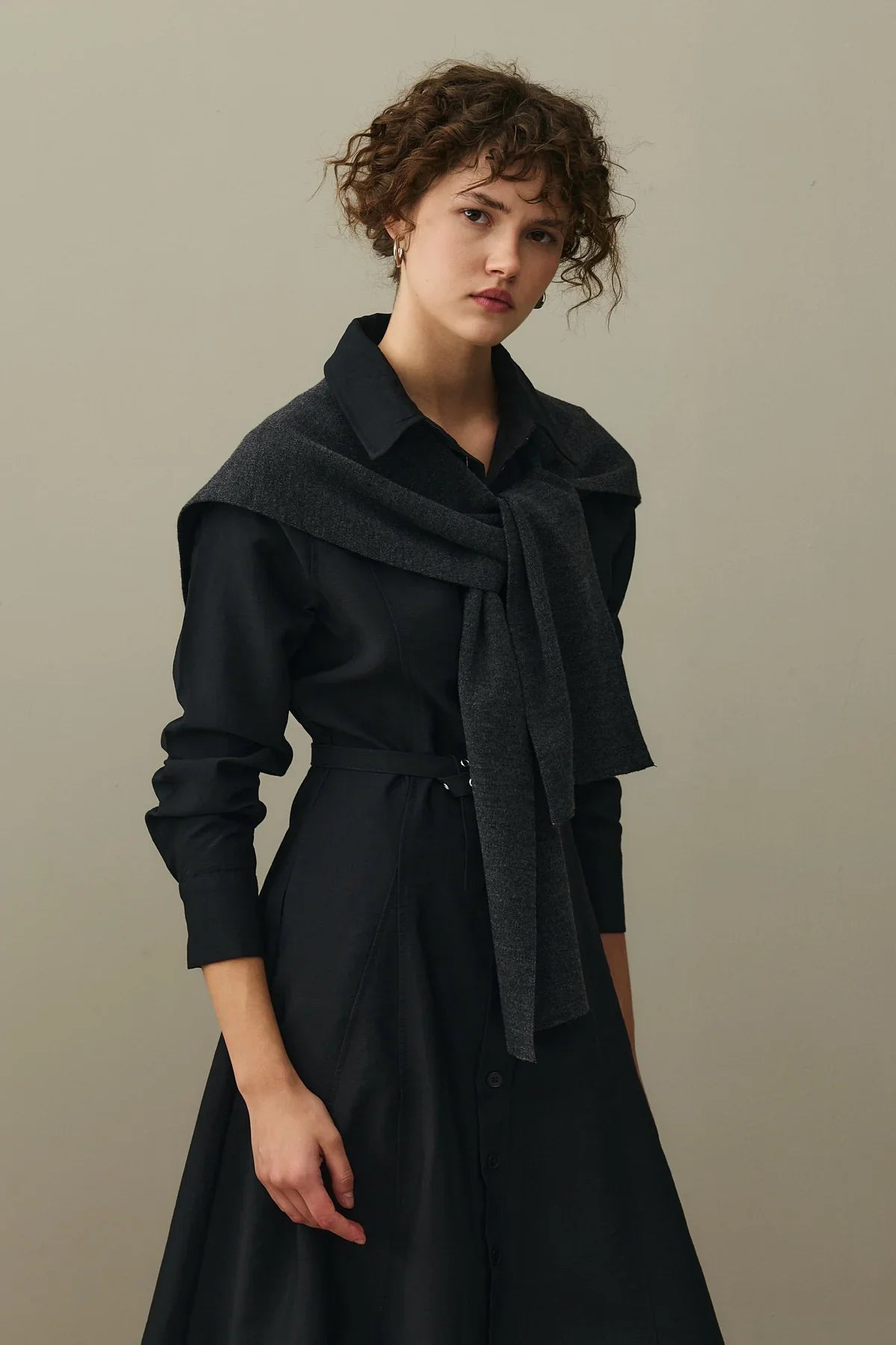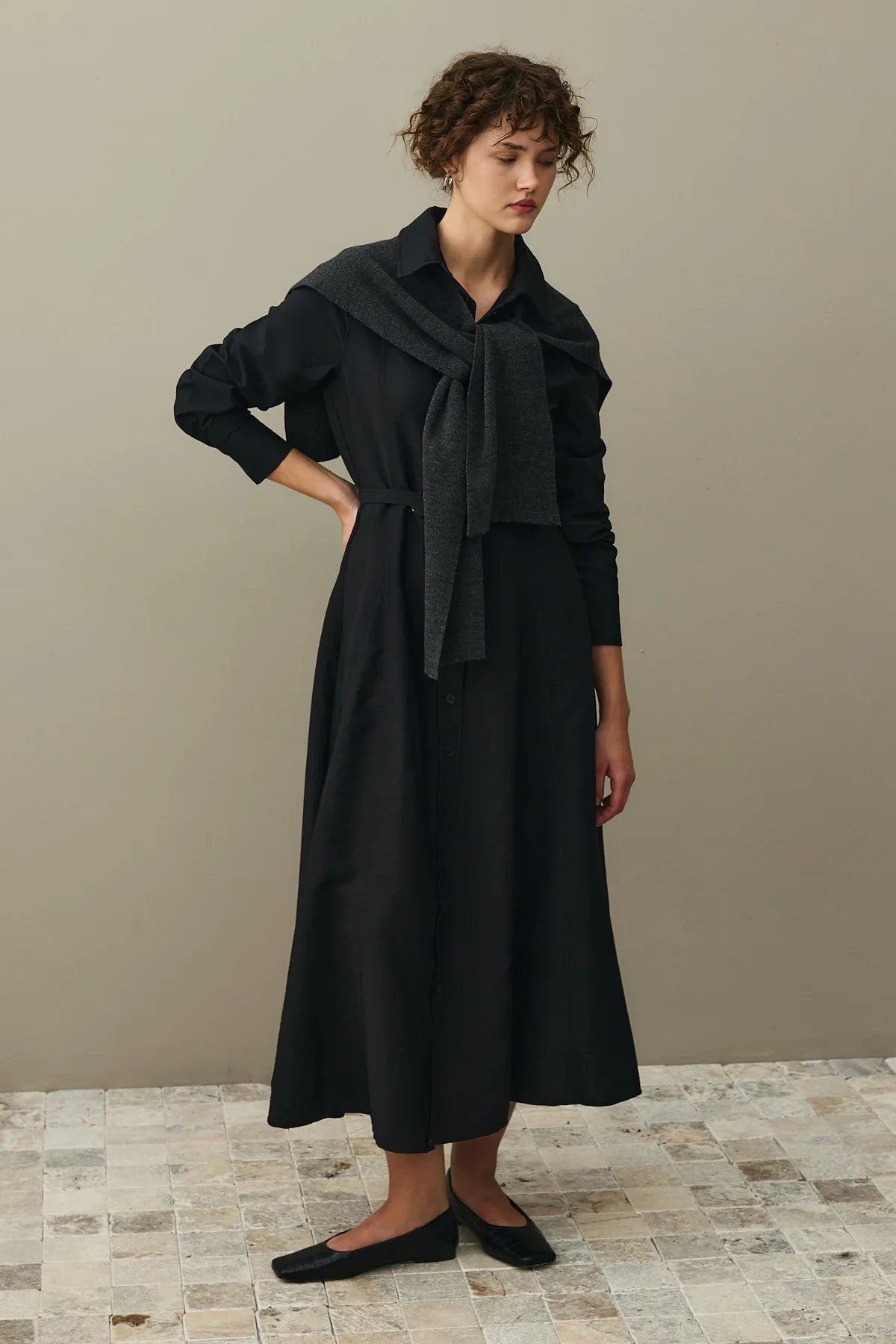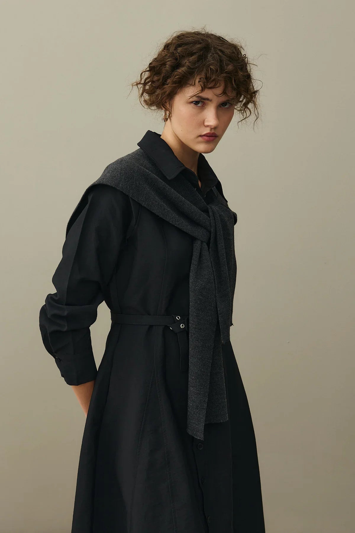 Kemerli Gömlek Elbise Siyah