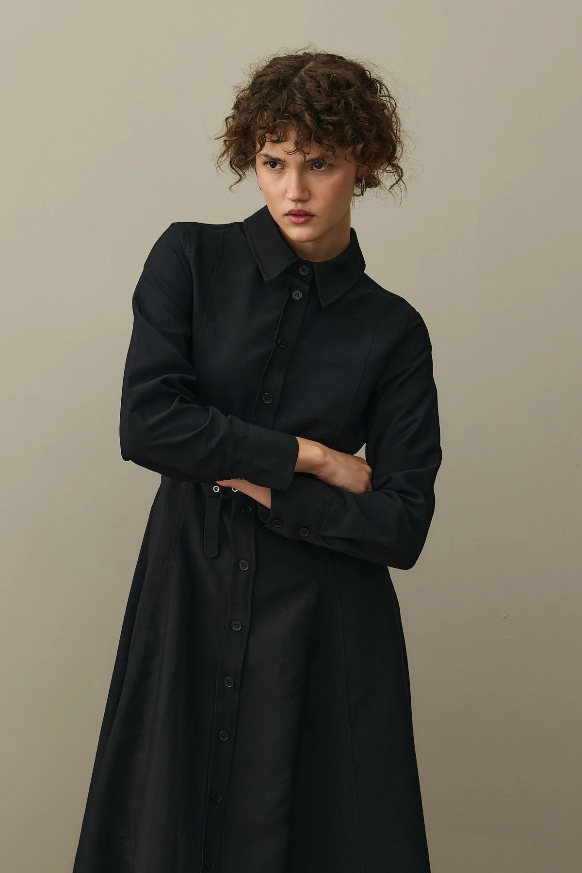 Klasik yaka, gabardin dokuma kumaştan, uzun kollu, manşetli, önden düğmeli, parça kesimli, kuşgözü ince kemerli, maxi boy elbise. 36 Beden Uzunluk:130 cm, Kol Uzunluğu: 62 cm, Göğüs:48, Bel: 43 cm, Basen:51 cm, İki Omuz Arası Mesafe: 34 cm 38 Beden Uzunluk:133 cm, Kol Uzunluğu: 62 cm, Göğüs:50, Bel: 45cm, Basen:51cm, İki Omuz Arası Mesafe: 35 cm 40 Beden Uzunluk:135 cm, Kol Uzunluğu: 62 cm, Göğüs:52, Bel: 47 cm, Basen:57 cm, İki Omuz Arası Mesafe: 39 cm Ürün Seyyar Kemerlidir.