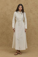 Gömlek yakalı, patlı önü düğme kapamalı, etekleri gode kesimli, ince kaplama kemer detaylı, manşetli, keten karışımlı dokuma kumaş, maxi boy elbise. 36 BEDEN Uzunluk: 139 cm, Kol Uzunluğu: 62 cm, İki Omuz Arası Mesafe: 39 cm, Gögüs: 48 cm, Bel: 44 cm. 38 BEDEN Uzunluk: 140 cm, Kol Uzunluğu: 64 cm, İki Omuz Arası Mesafe: 41 cm, Gögüs: 50 cm, Bel: 46 cm. 40 BEDEN Uzunluk: 141 cm, Kol Uzunluğu: 66 cm, İki Omuz Arası Mesafe: 44 cm, Gögüs: 52 cm, Bel: 47cm .