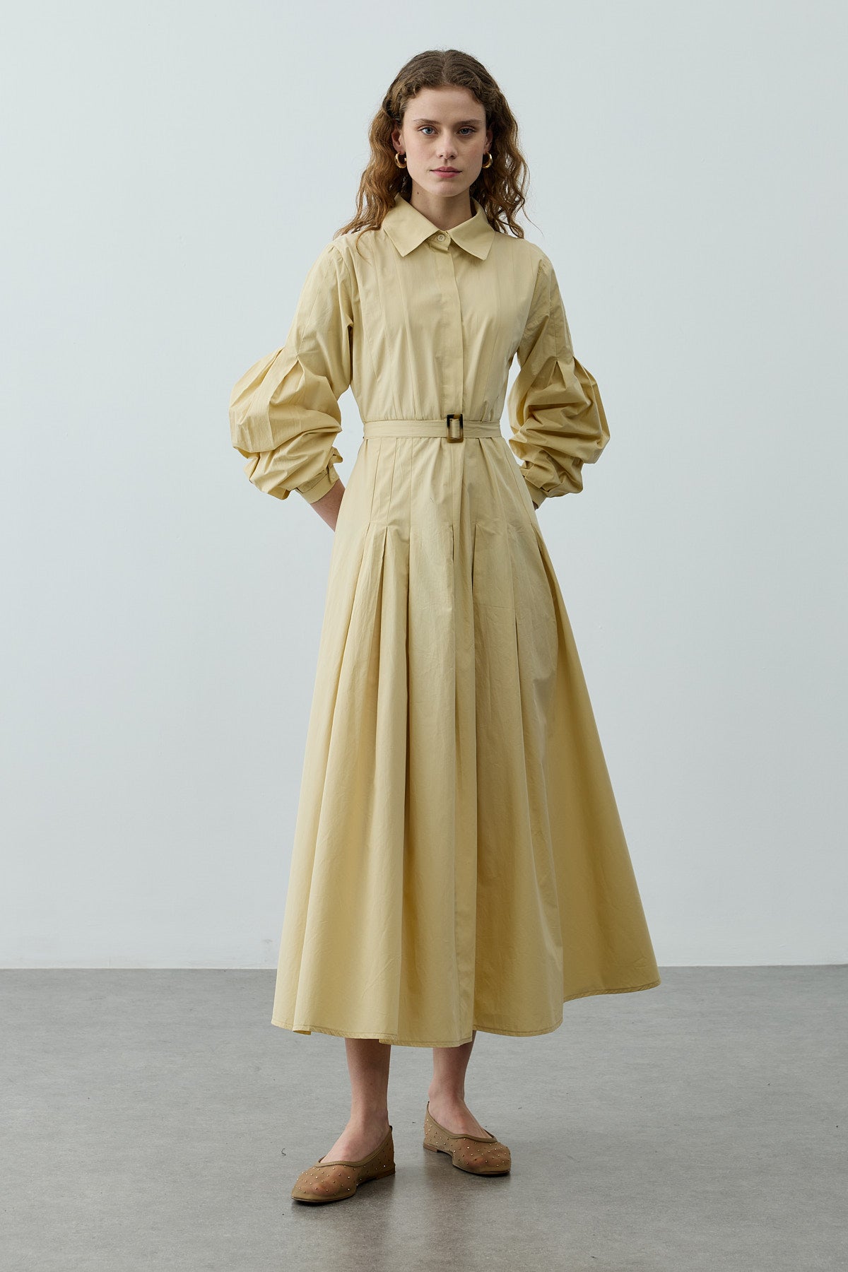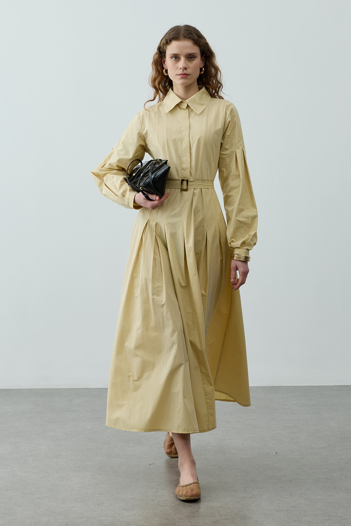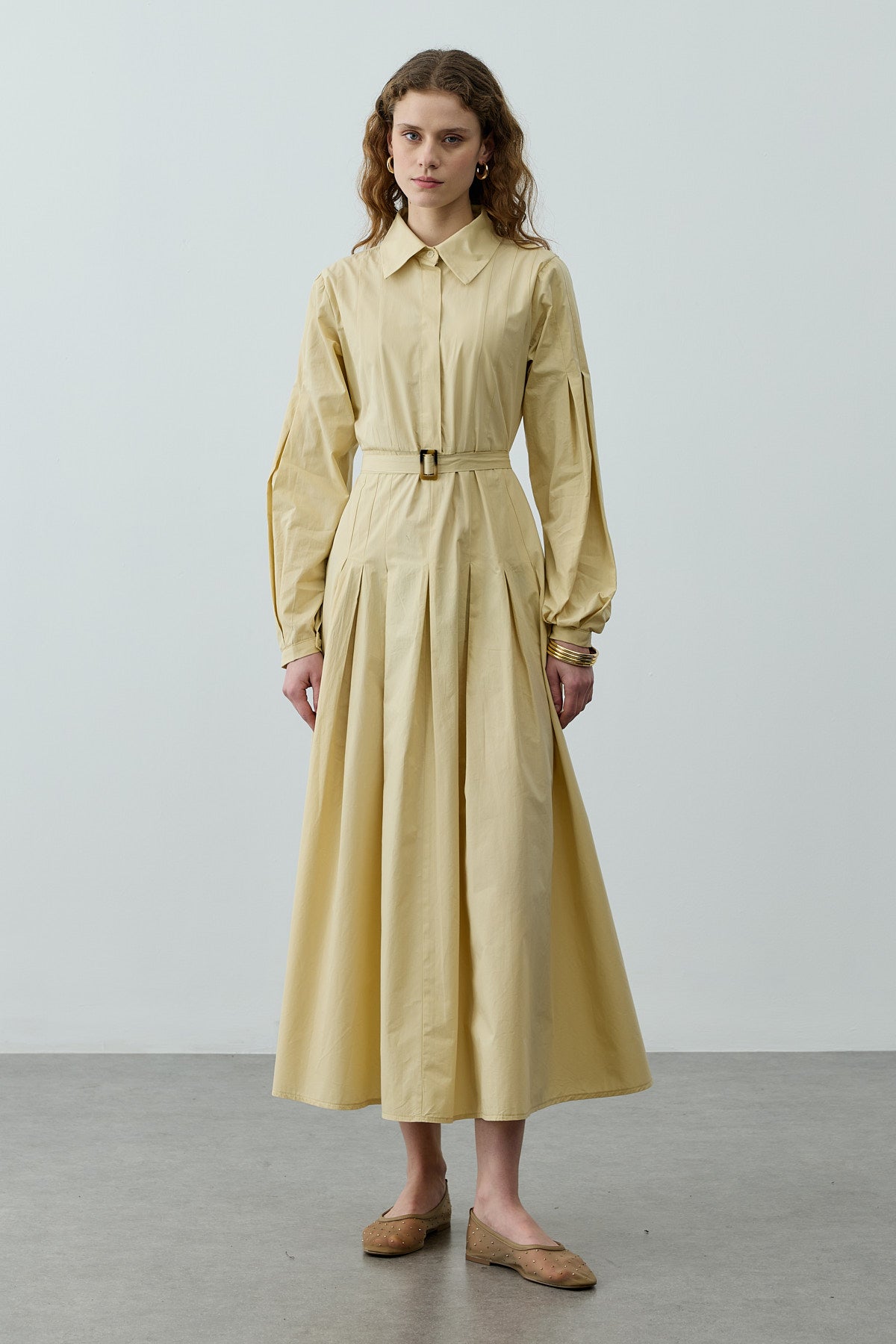 Pensli Kemerli Maxi Elbise Sarı