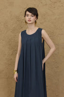 Bisiklet yakalı, robalı, pileli, fermuar kapamalı, kalın askılı, keten karışımlı dokuma kumaştan, maxi boy elbise. 1(36-38)BEDEN Uzunluk: 131 cm ,İki Omuz Arası Mesafe: 37 cm, Gögüs: 45 cm, Bel: 56 cm. 2(40-42)BEDEN Uzunluk: 133 cm , İki Omuz Arası Mesafe: 39 cm, Gögüs: 47 cm, Bel: 58 cm.