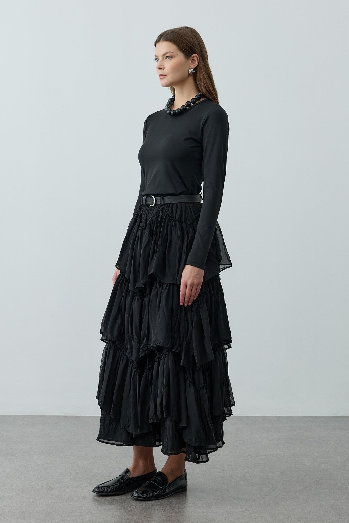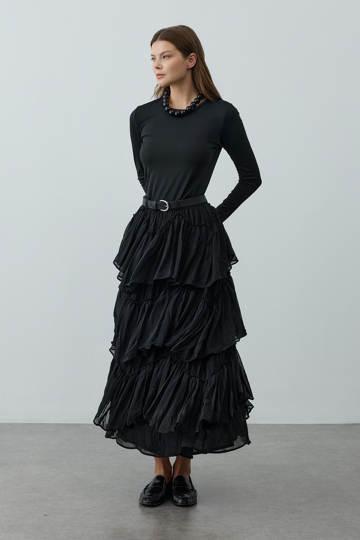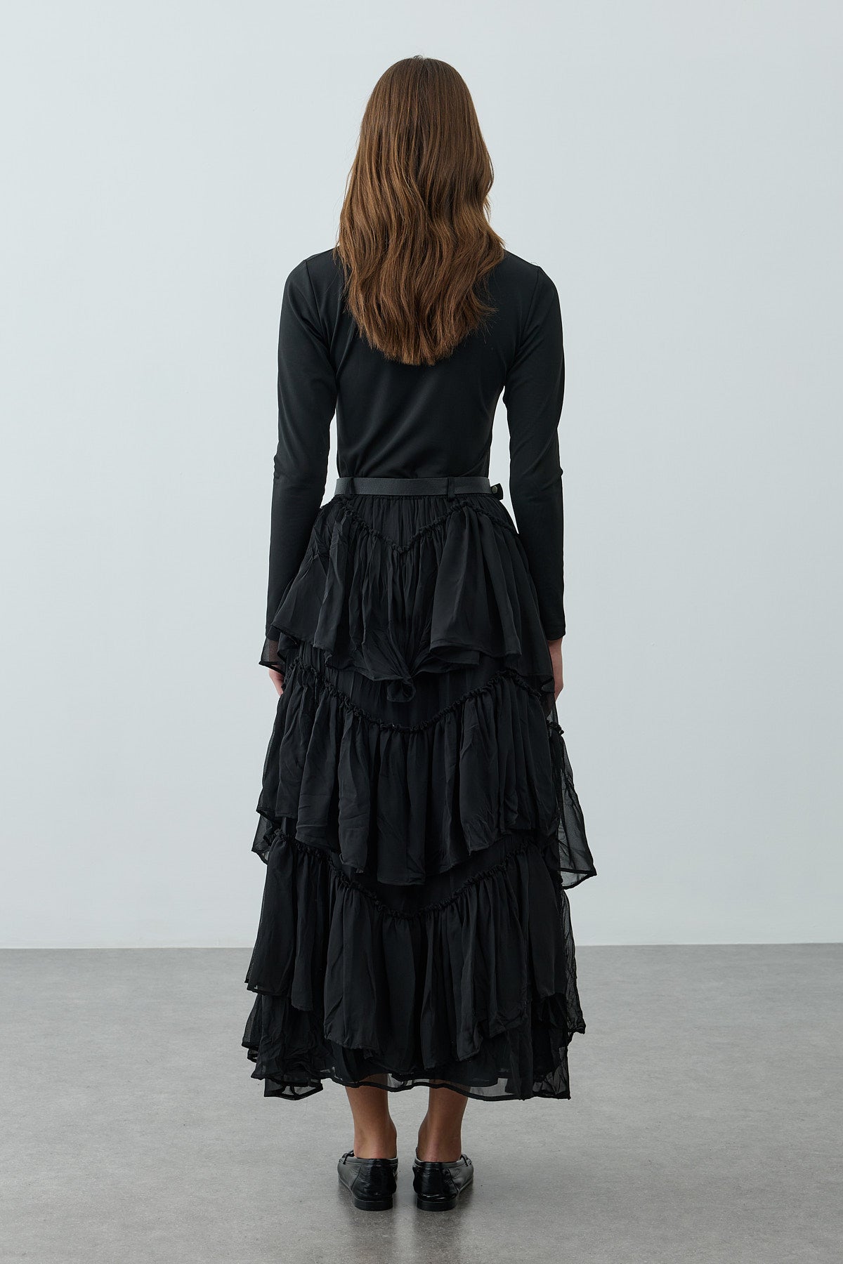 Çok Katlı Şifon Etek Siyah