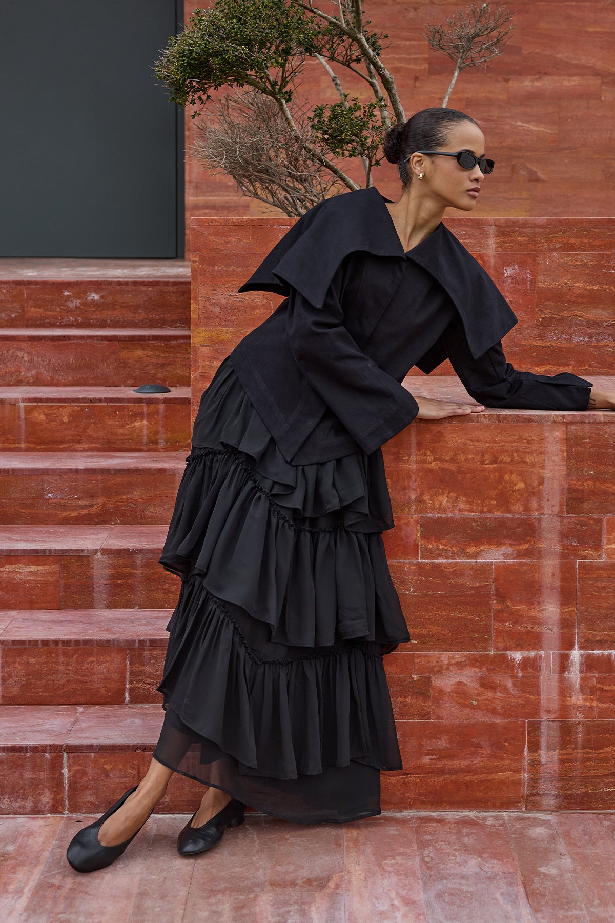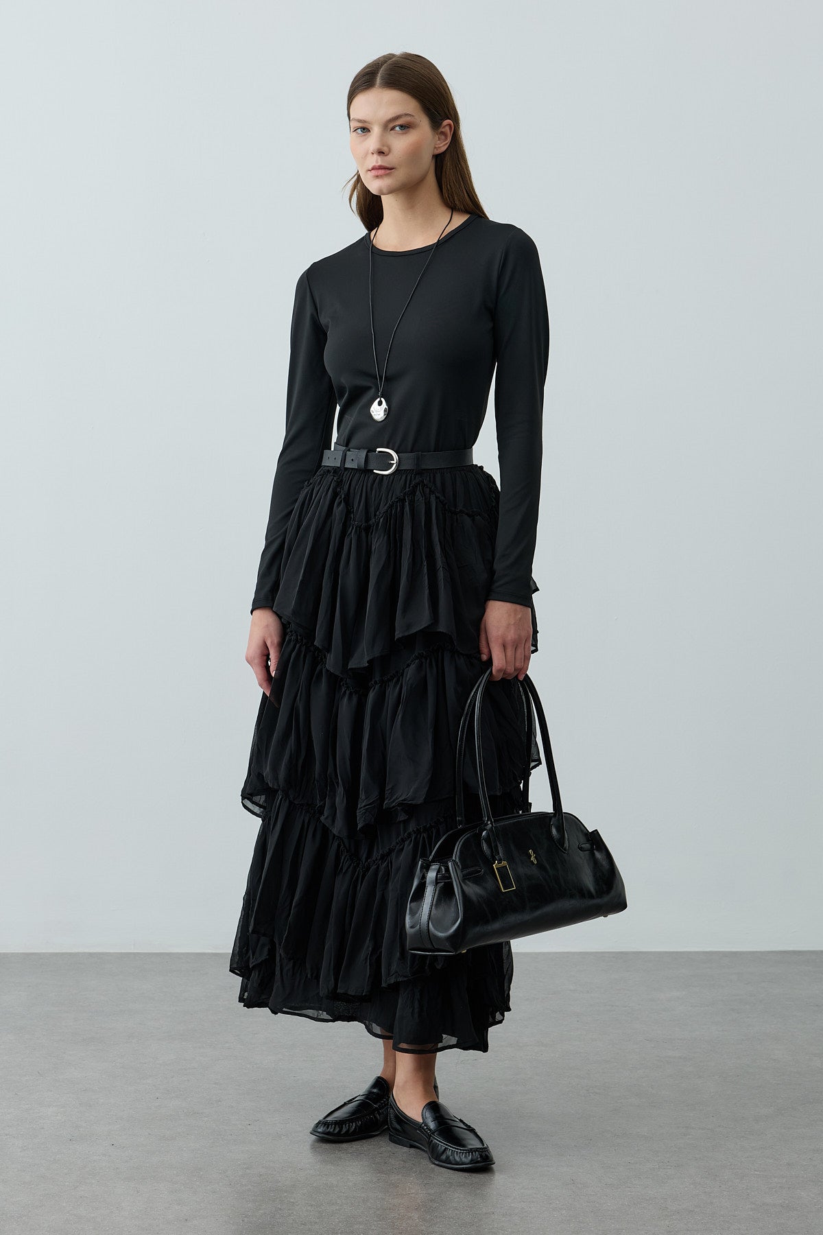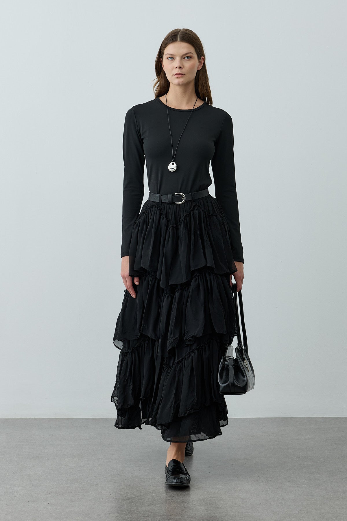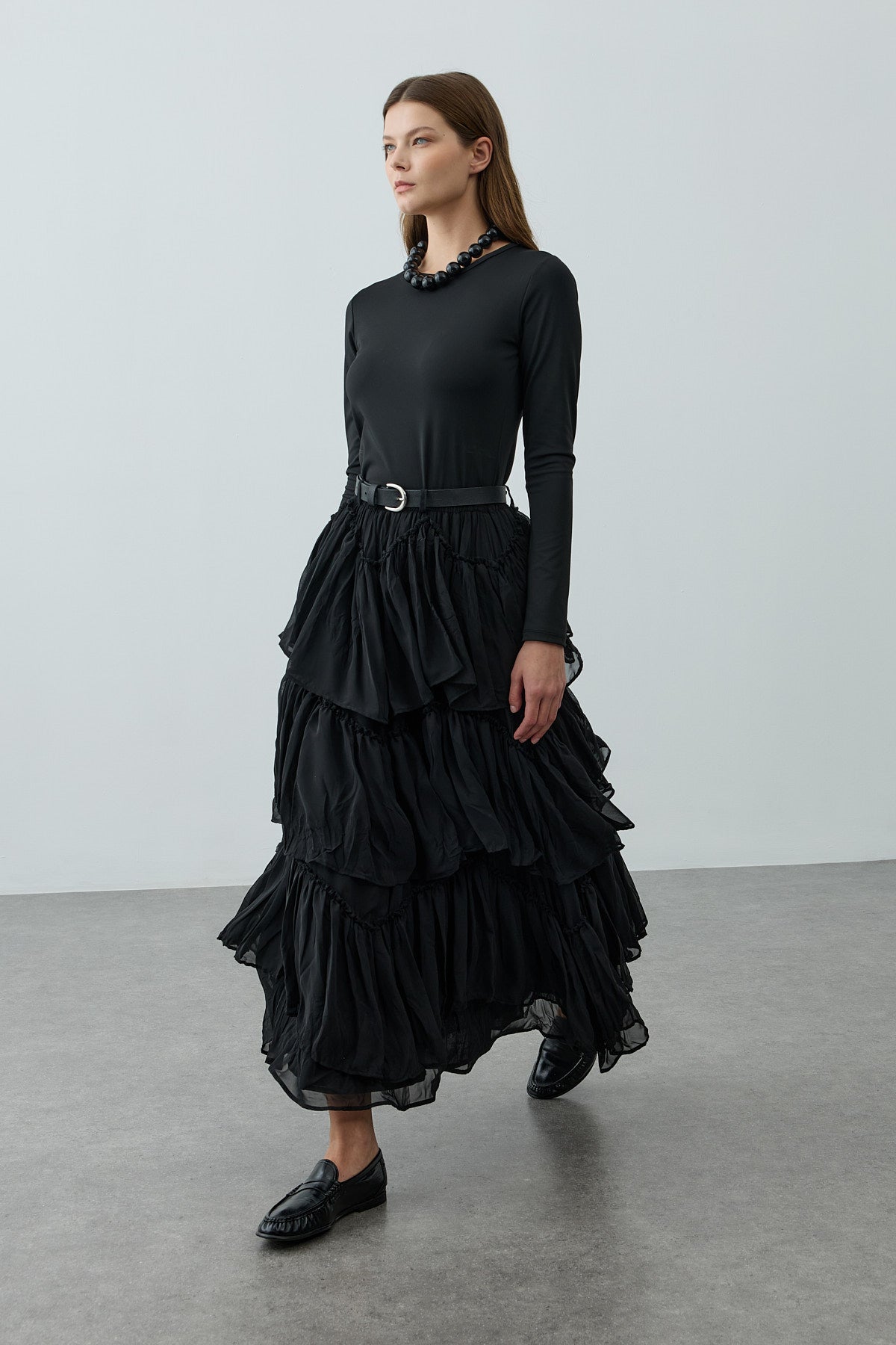 Çok Katlı Şifon Etek Siyah