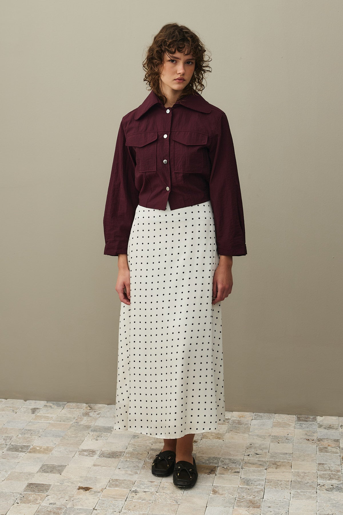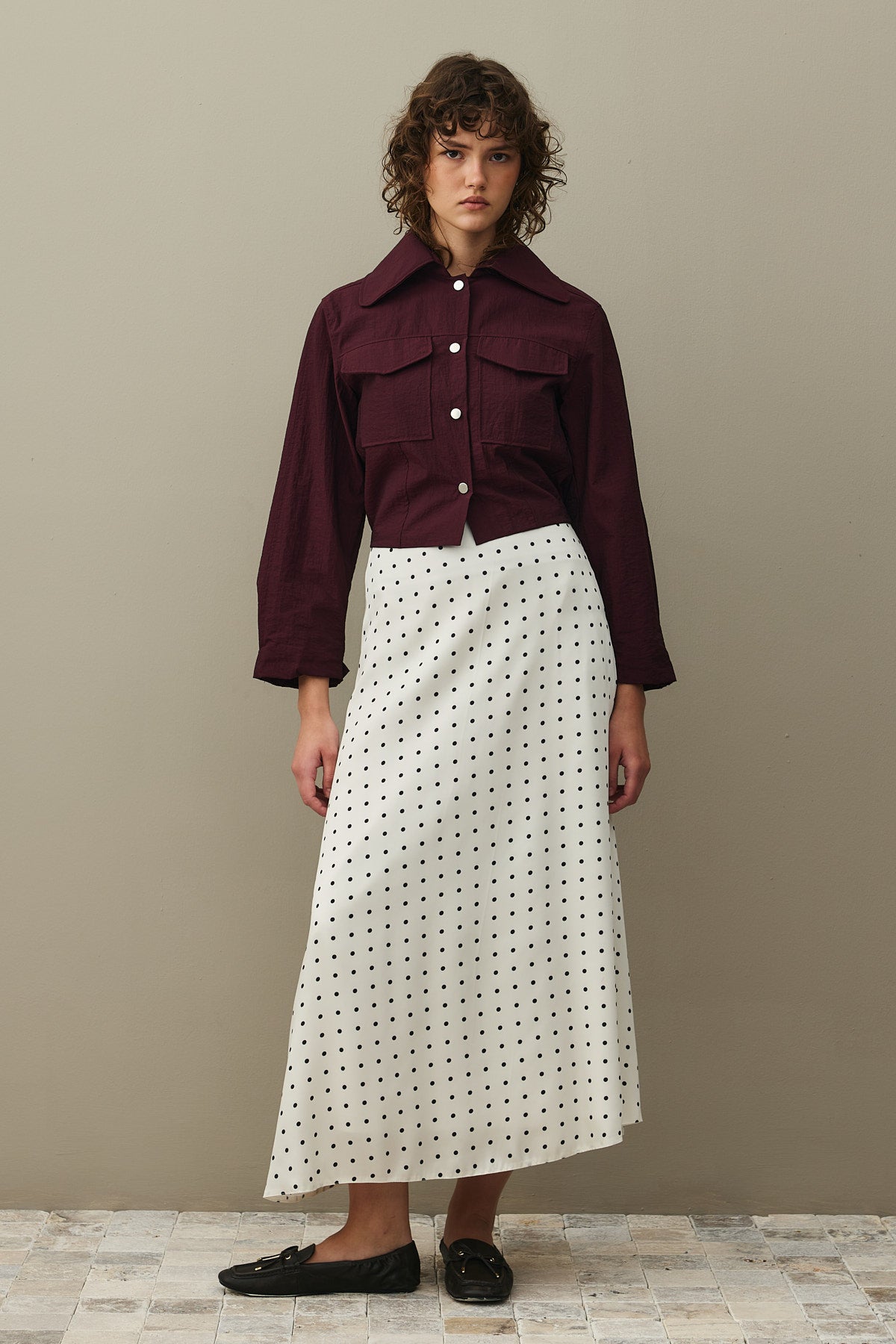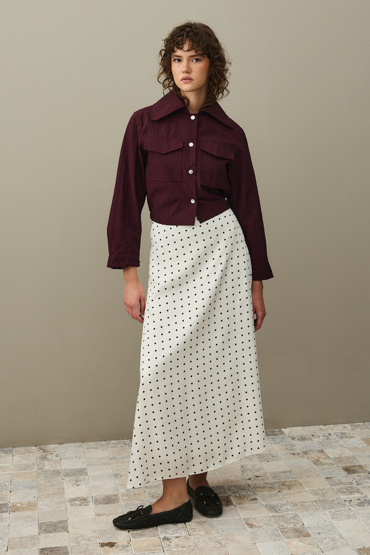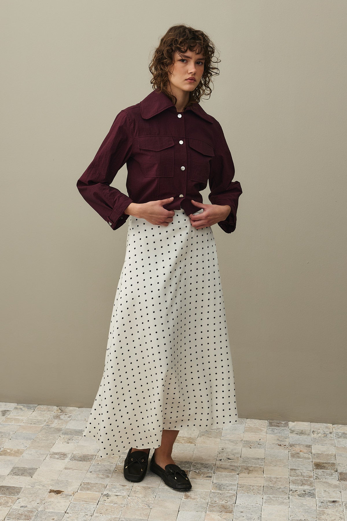 Twill Puantiye Etek Ekru