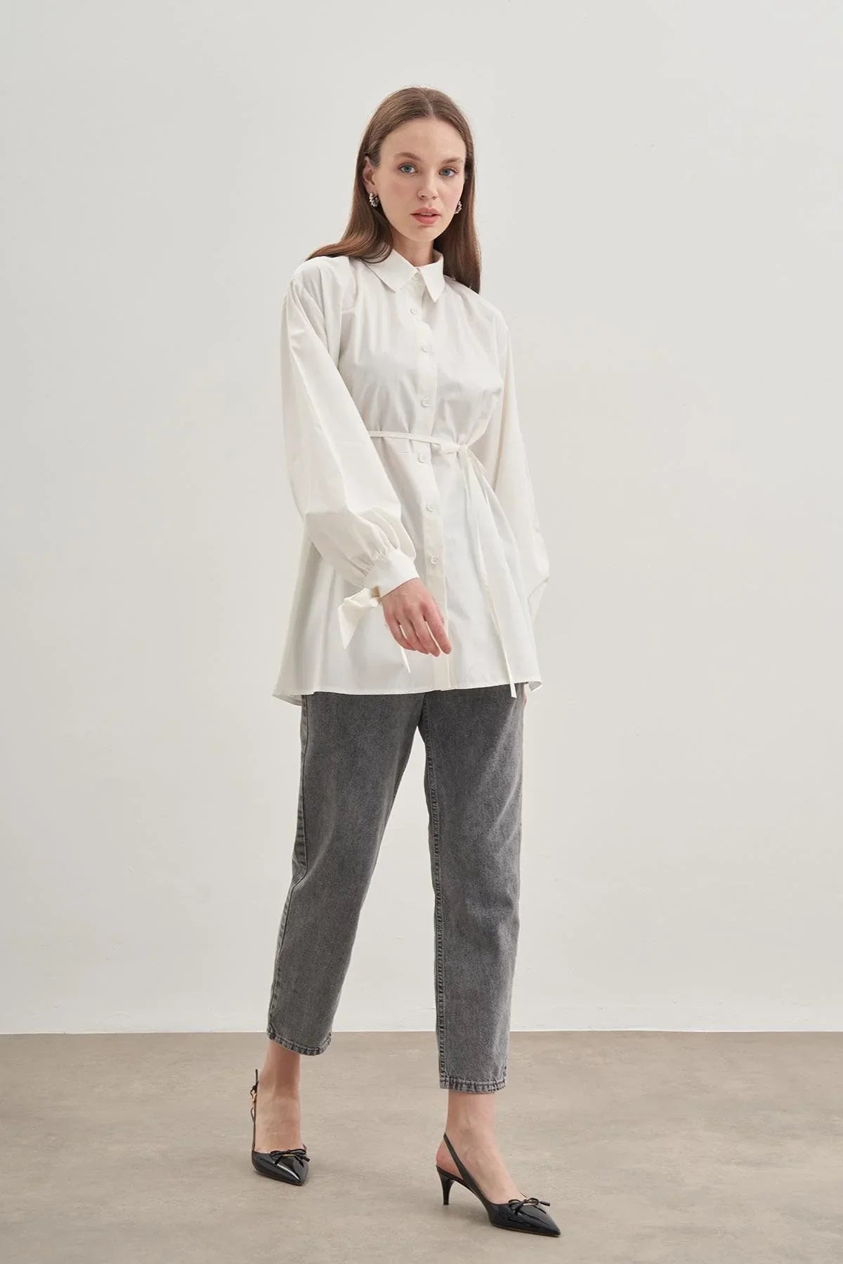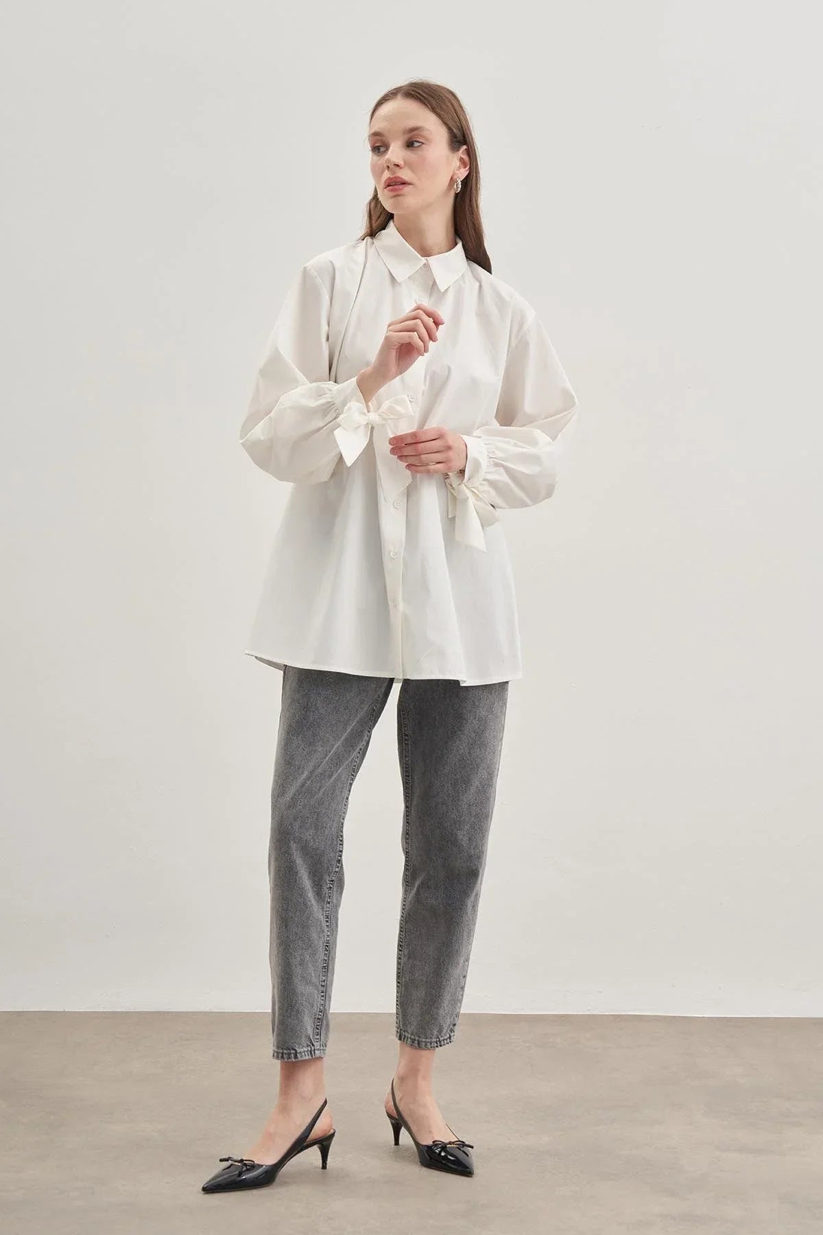 Bağlamalı Gömlek Ekru