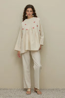 Nakışlı V Yaka Gömlek Naturel