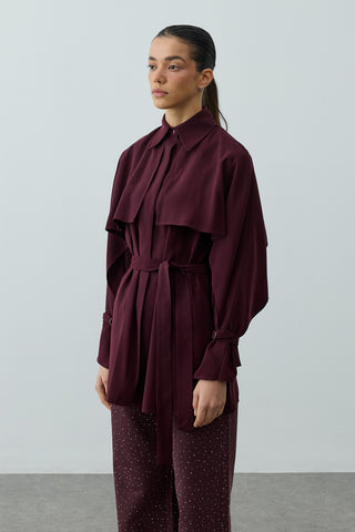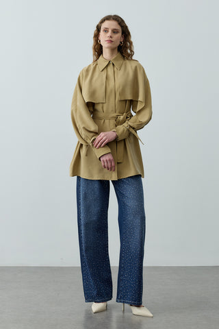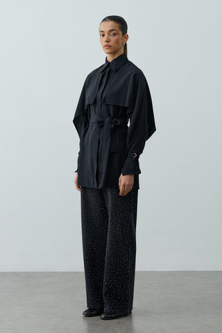 Pelerin Detaylı Denim Gömlek Ceket Lacivert
