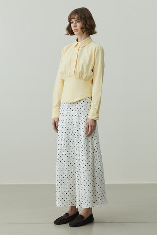 Sarı gömlek kombinleri beyaz pantolon, keten etek veya mavi denimle uyumludur. Minimal çizgiler enerjik ama zarif bir duruş sunar.