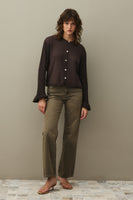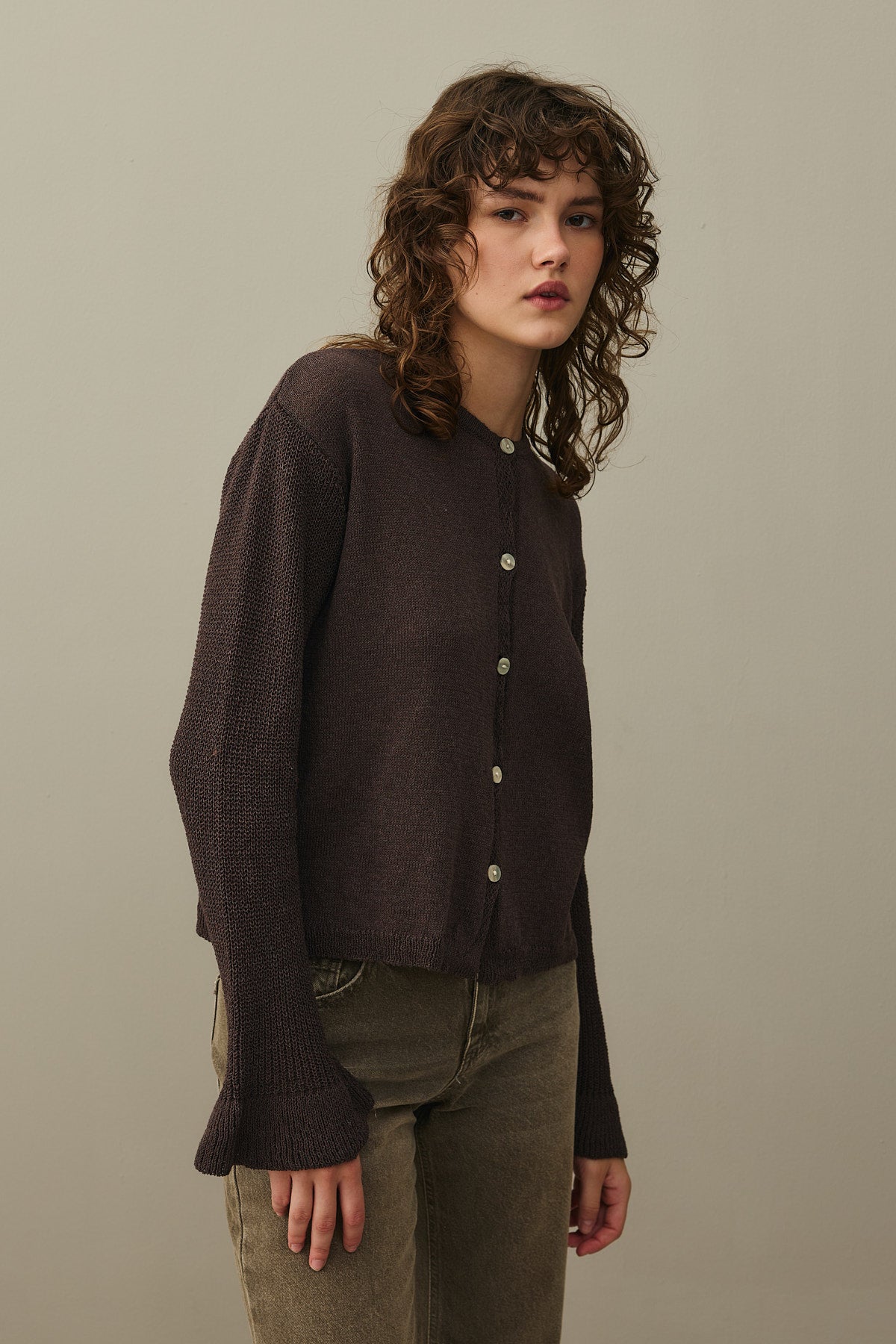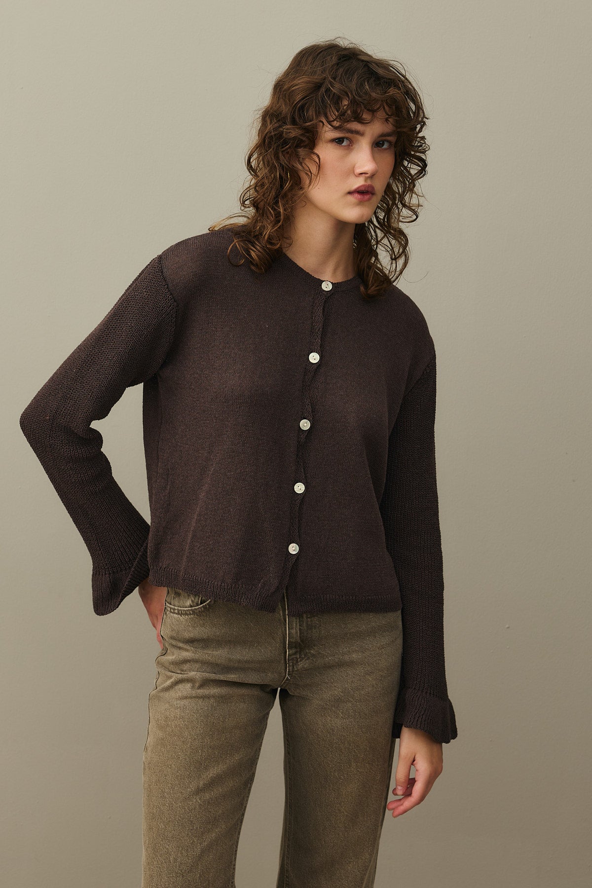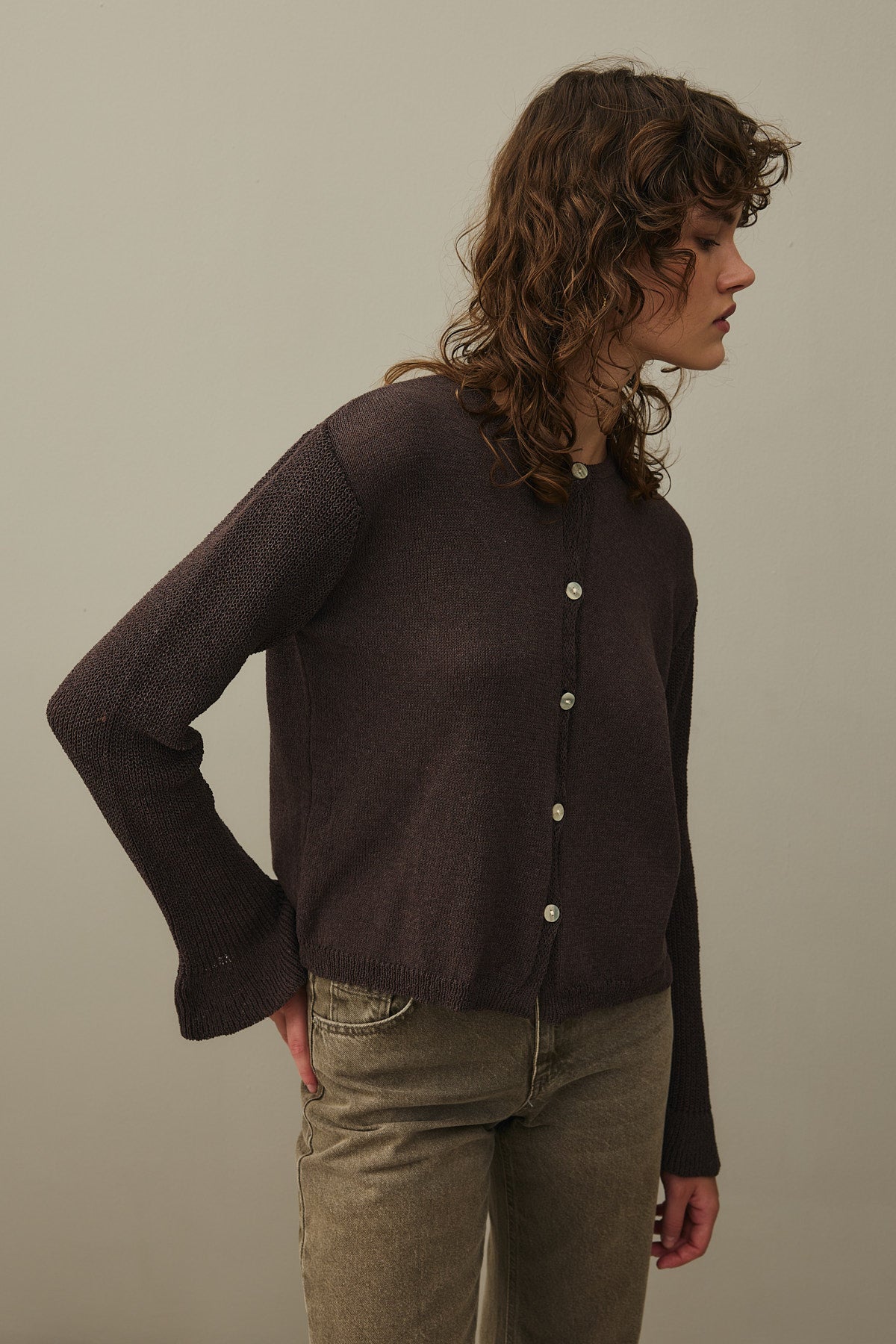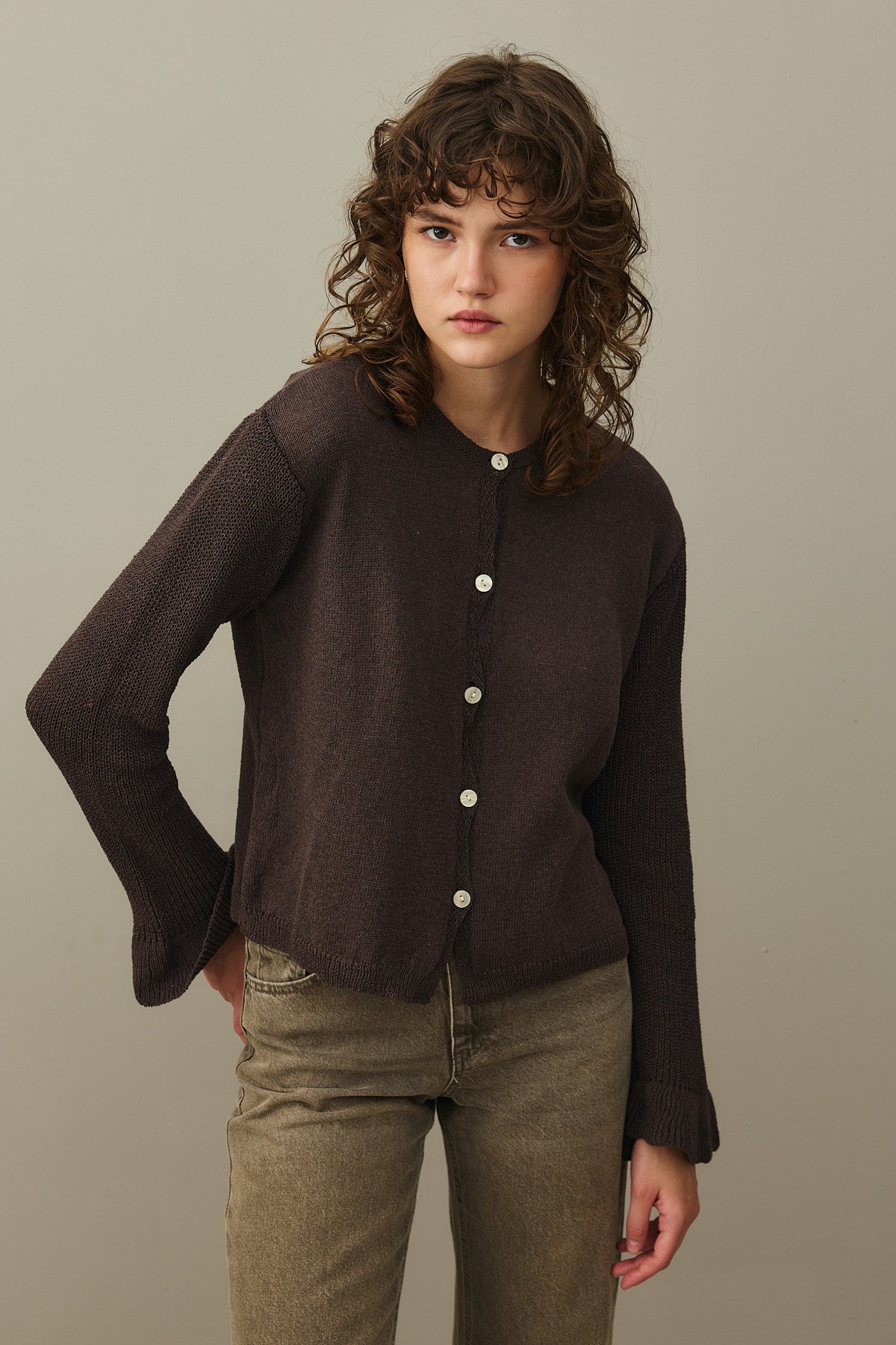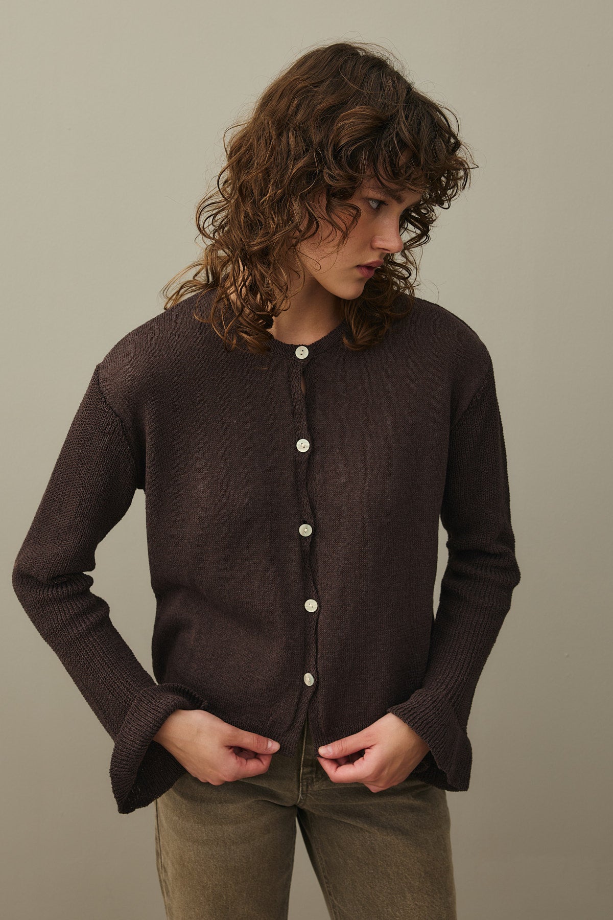 Pamuk frize ipli trikodan, bisiklet yakalı, uzun kollu, önü düğme kapamalı hırka. STANDART BEDEN Uzunluk: 58 cm, Kol Uzunluğu: 56 cm, İki Omuz Arası Mesafe:44 cm, Gögüs: 53 cm,Bel:50cm