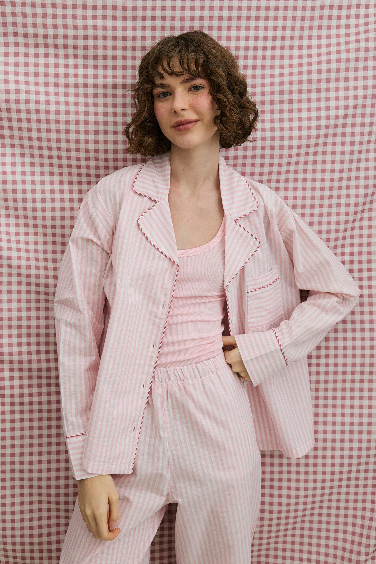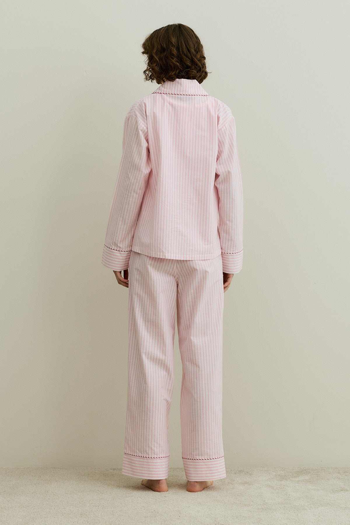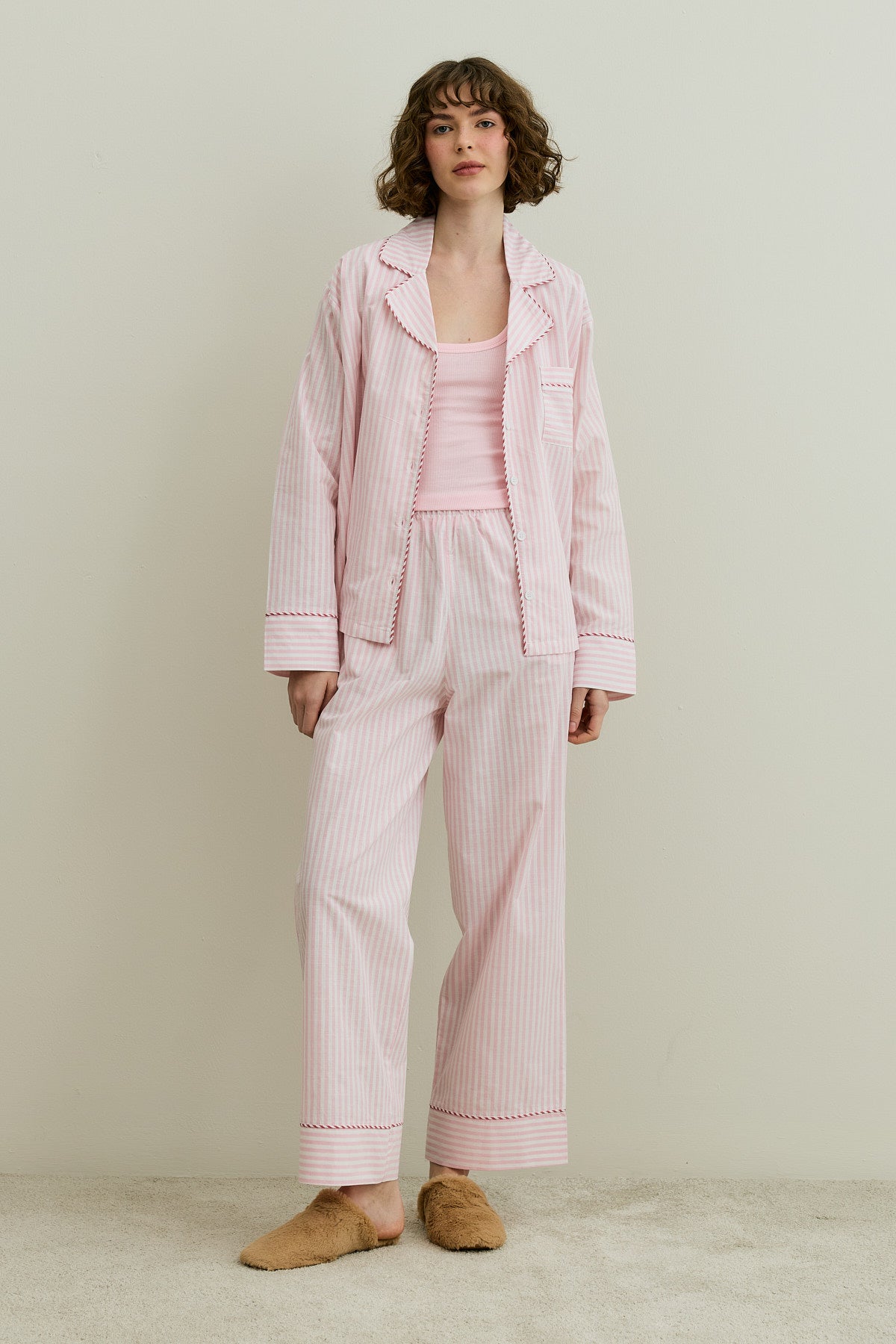 Çizgili Dokuma Pijama Takım Pembe