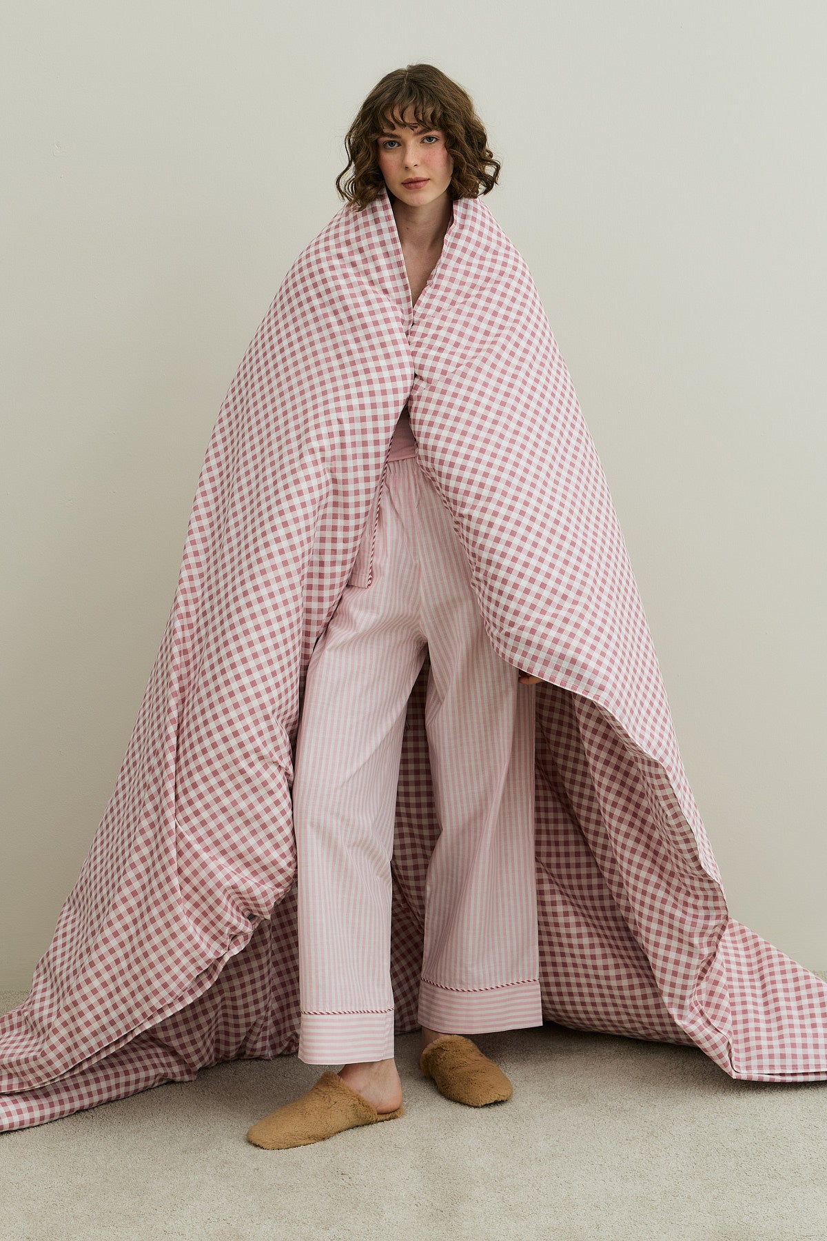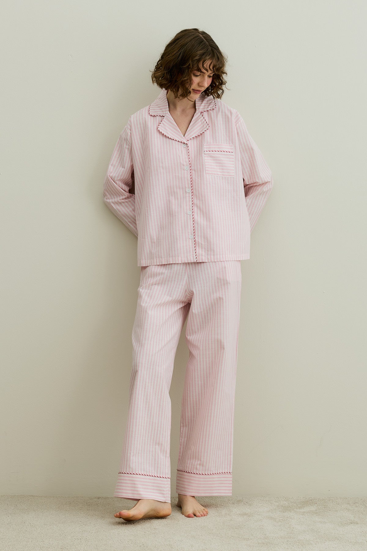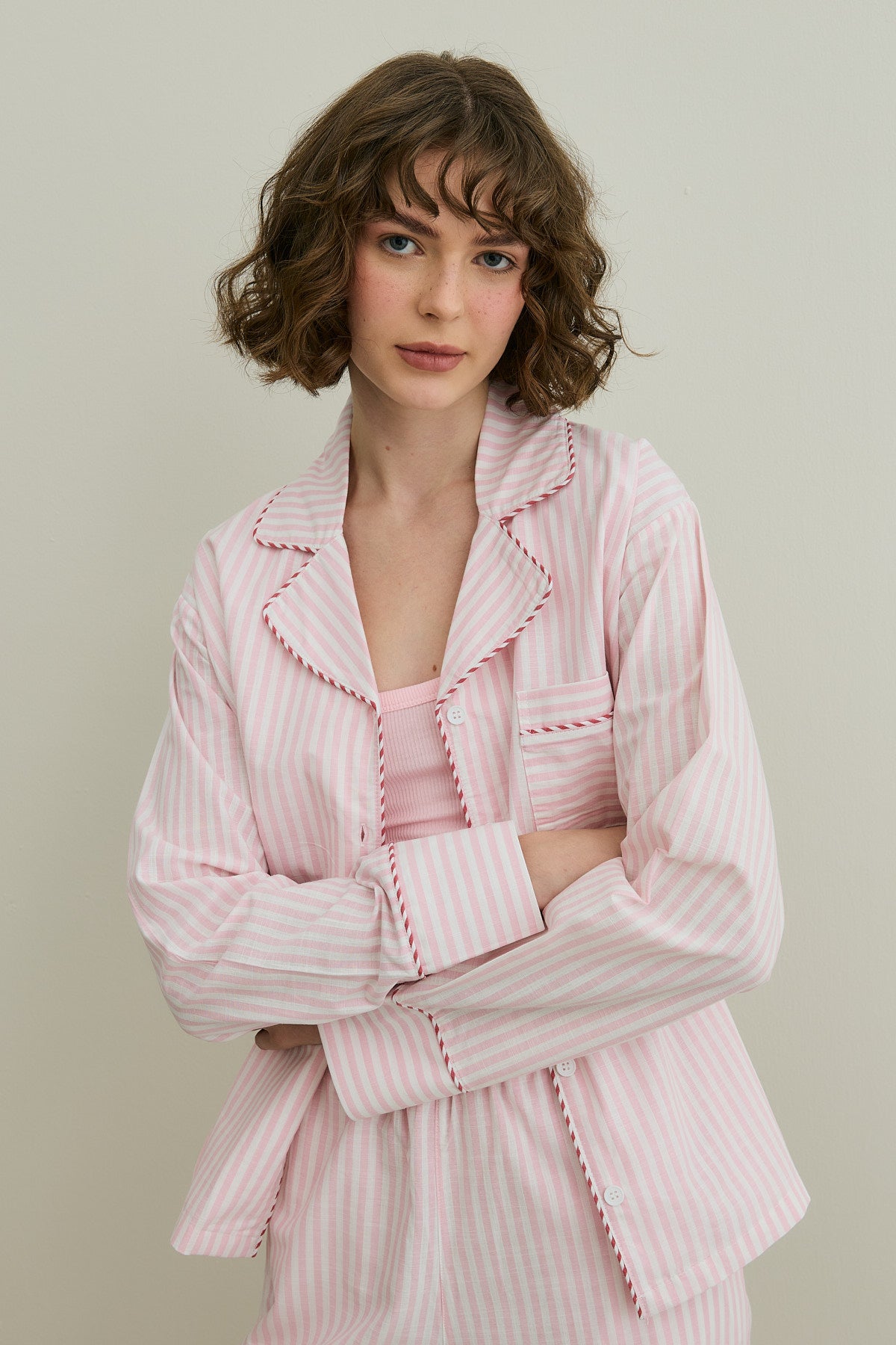 Çizgili Dokuma Pijama Takım Pembe